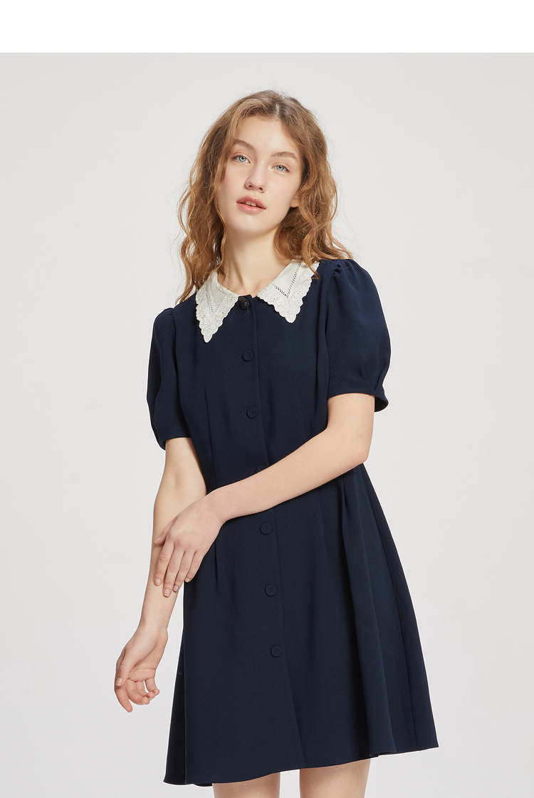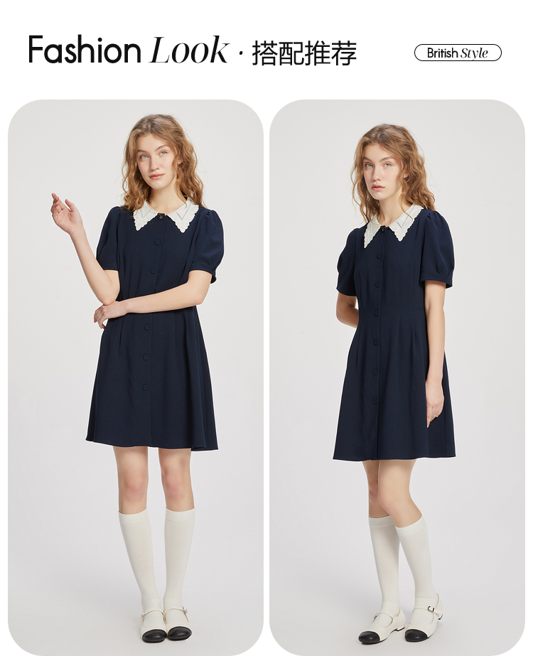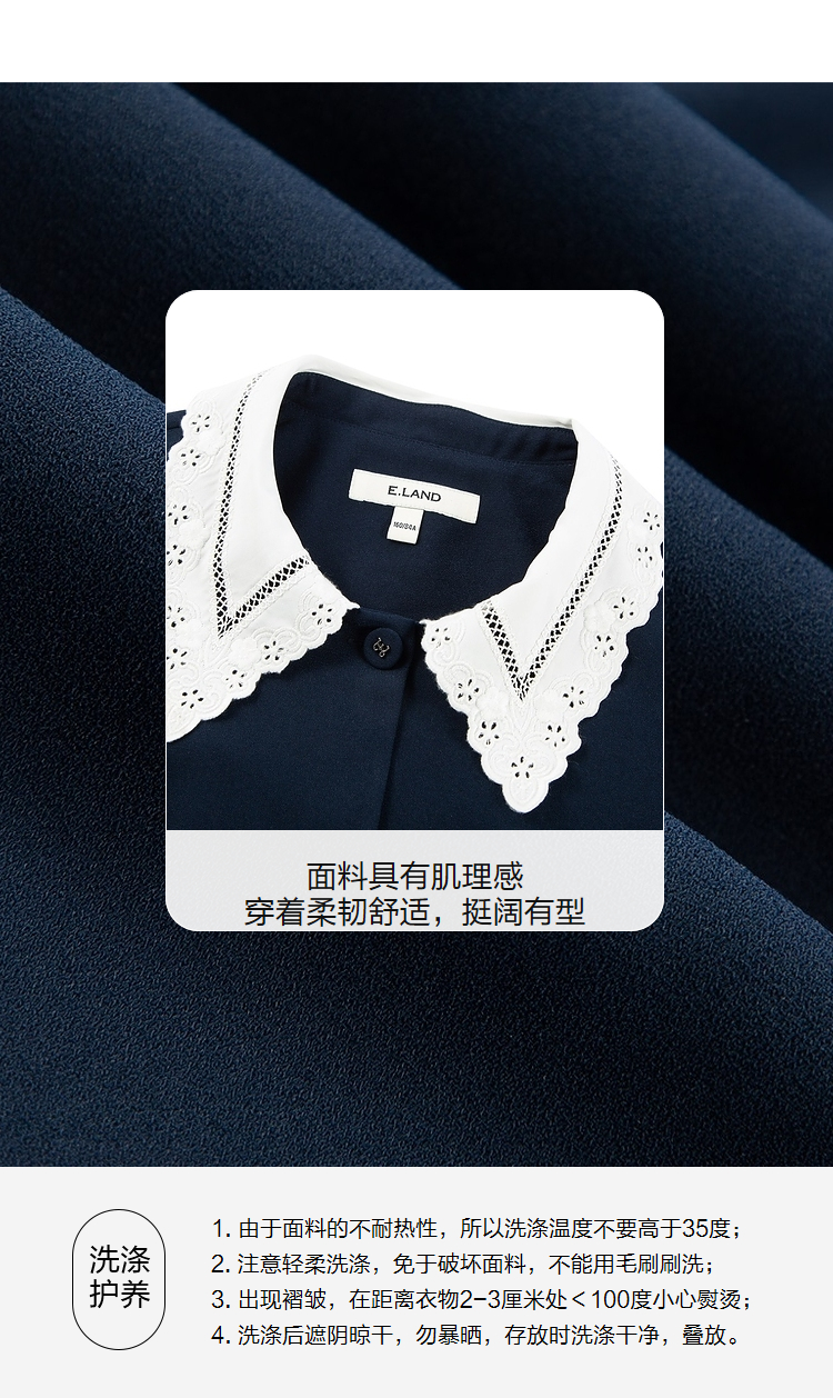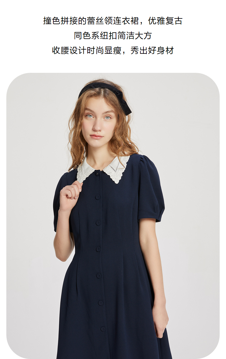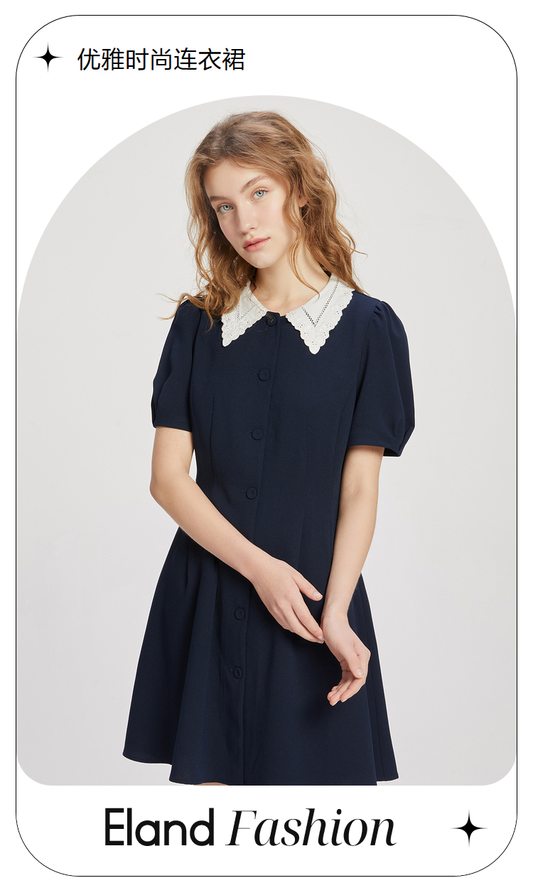 ELAND衣恋优雅大方蕾丝领口收腰显瘦连衣裙女EEOWC24H5B