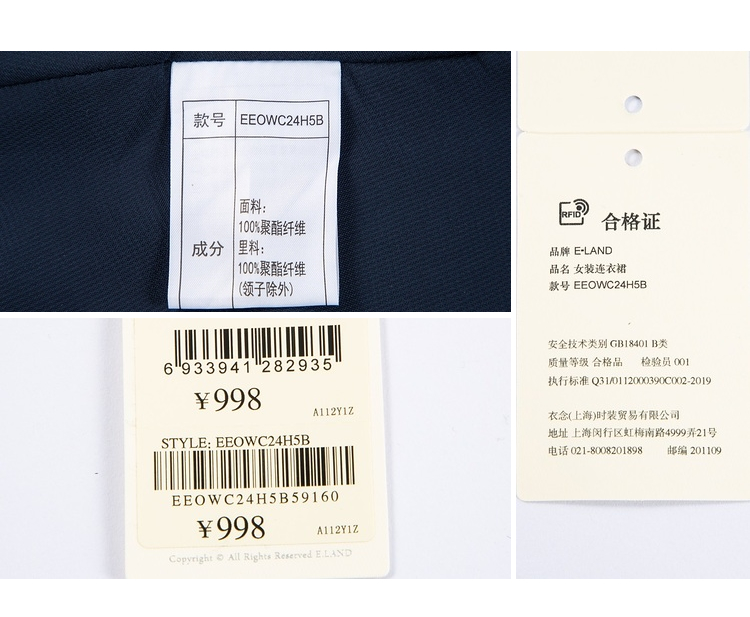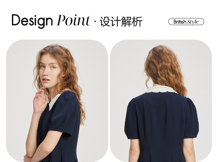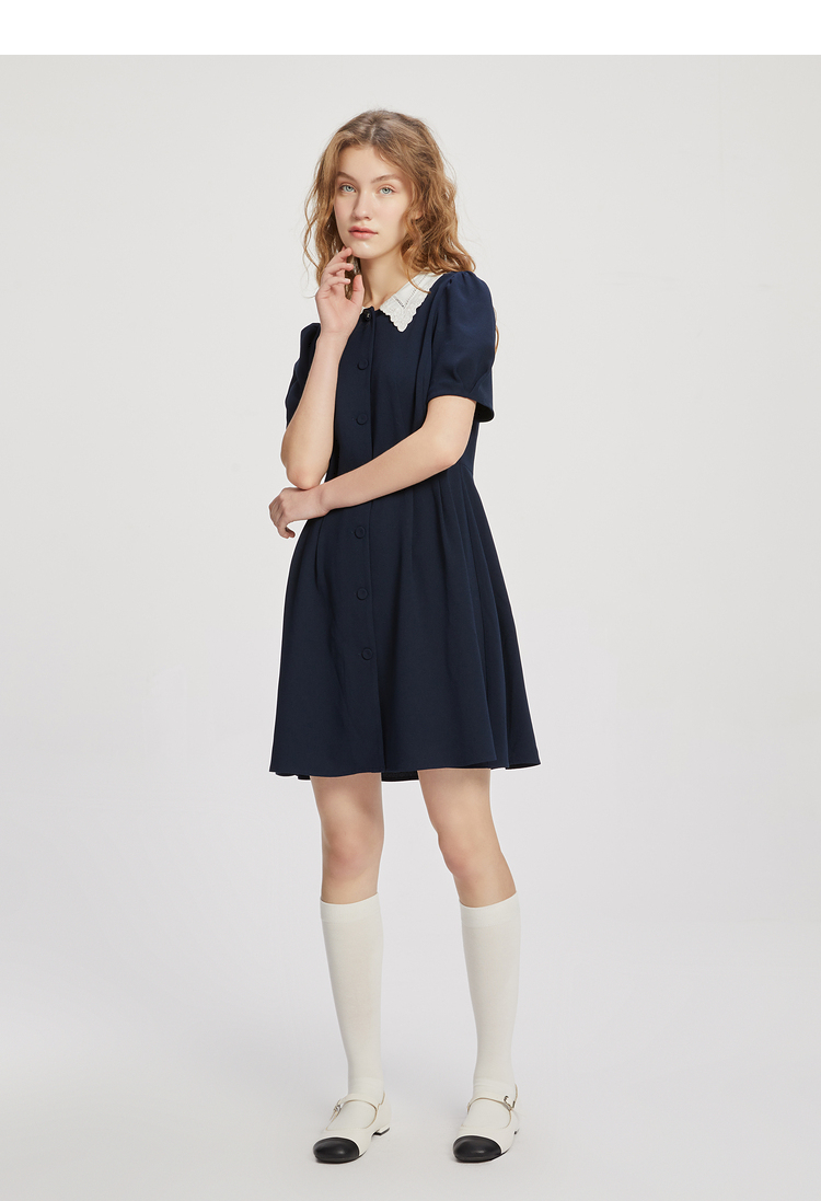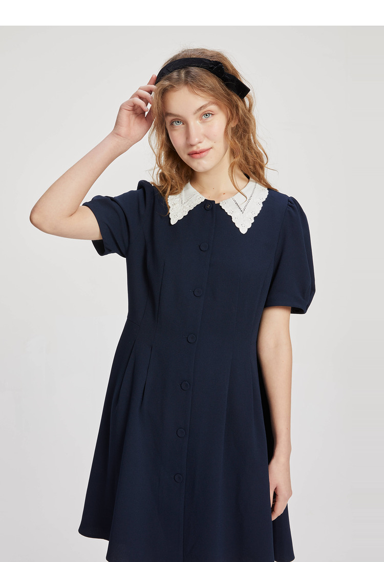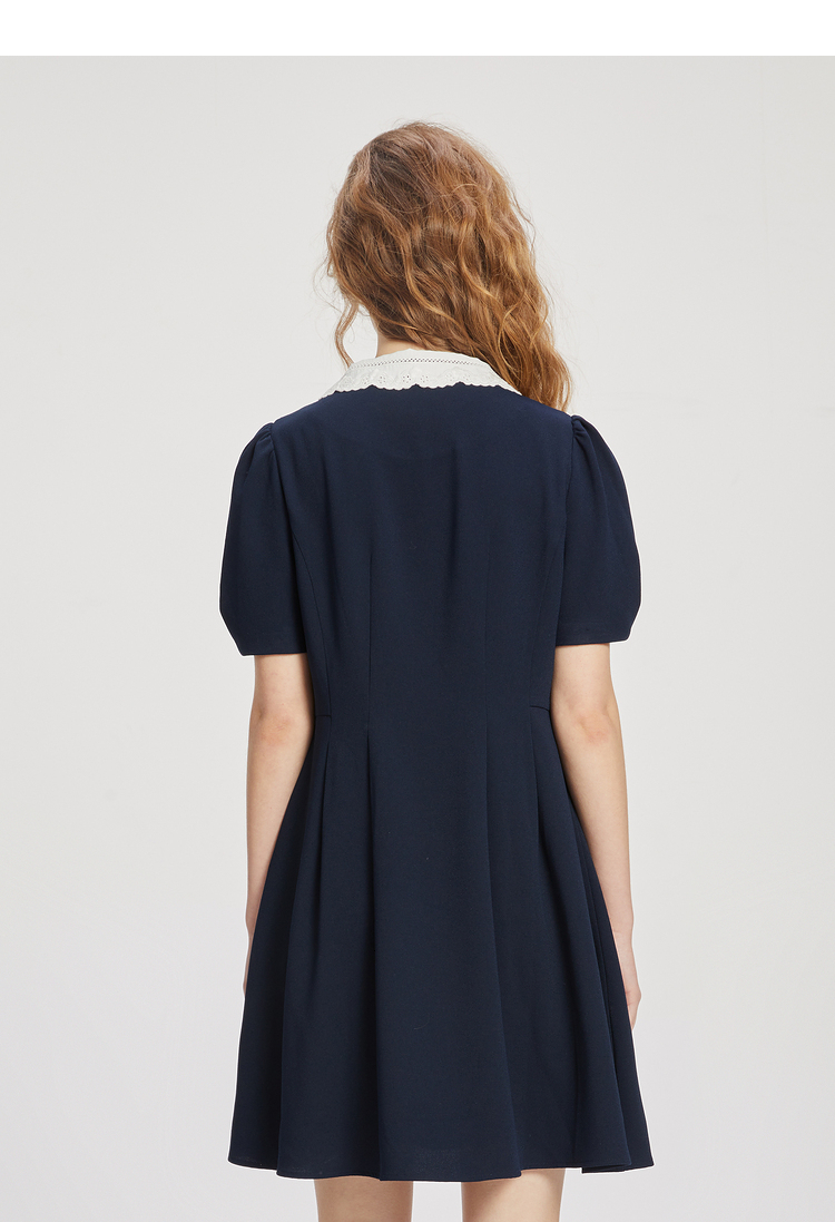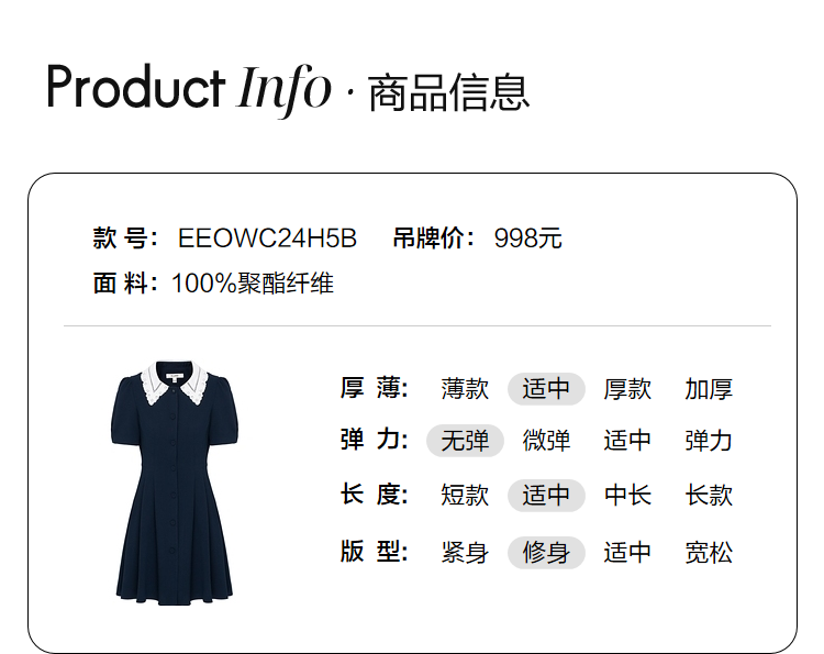 ELAND衣恋优雅大方蕾丝领口收腰显瘦连衣裙女EEOWC24H5B