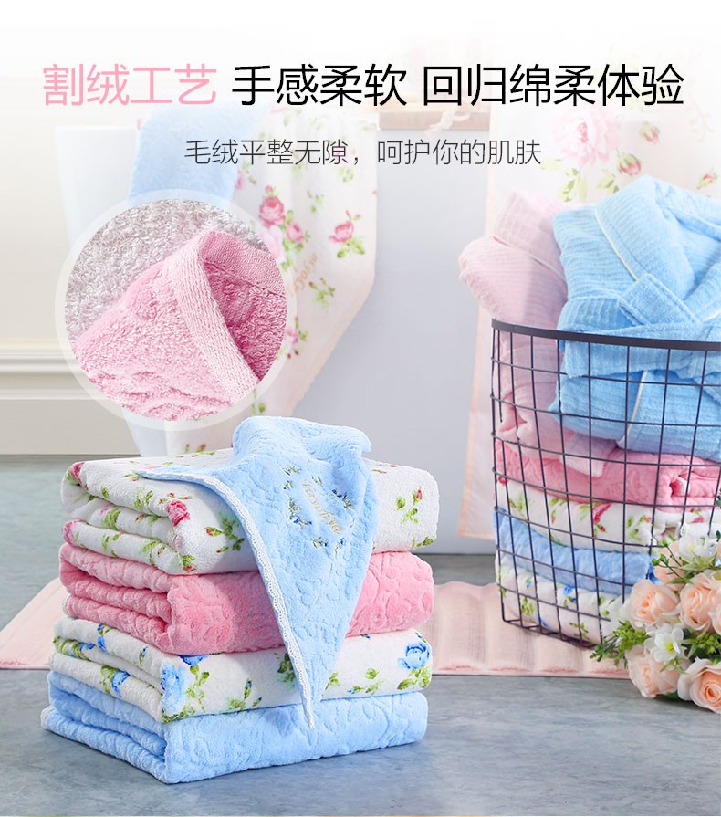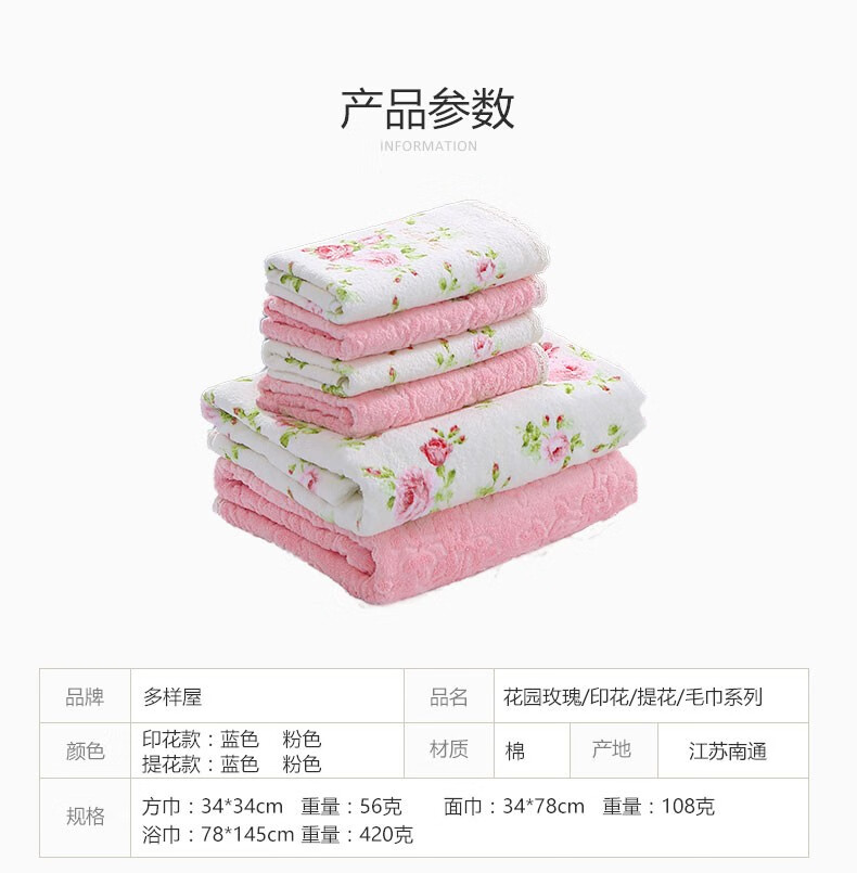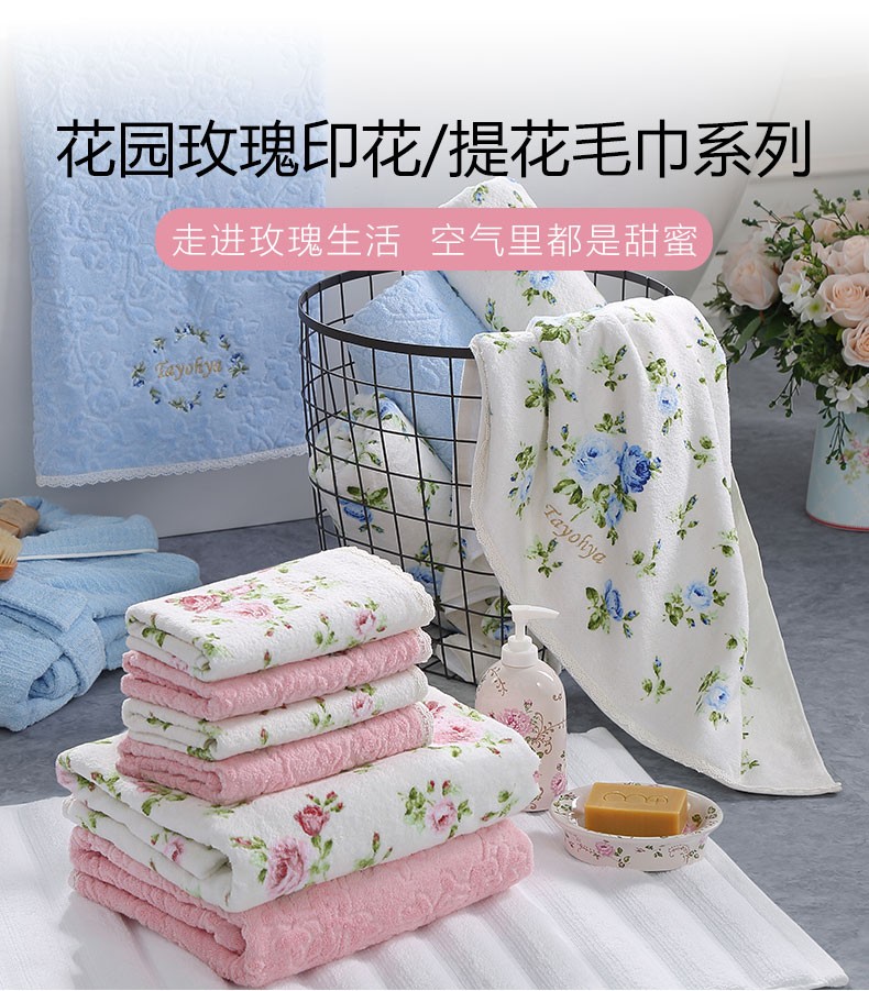 【多样屋专柜】多样屋纯棉印花蓝色毛巾方巾 蓬松柔软洗脸热敷擦手儿童面巾洗澡成人