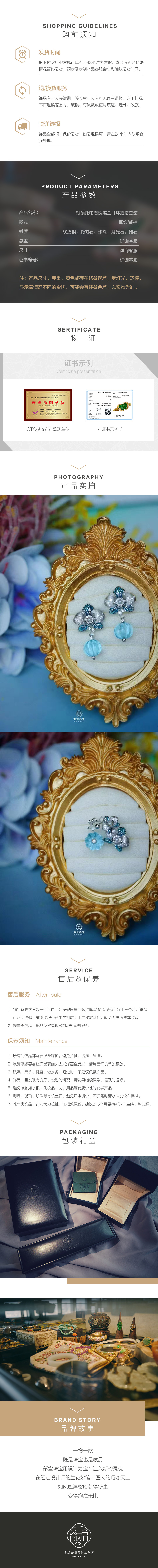 龢盒原创 银镶托帕石蝴蝶兰耳环戒指套装