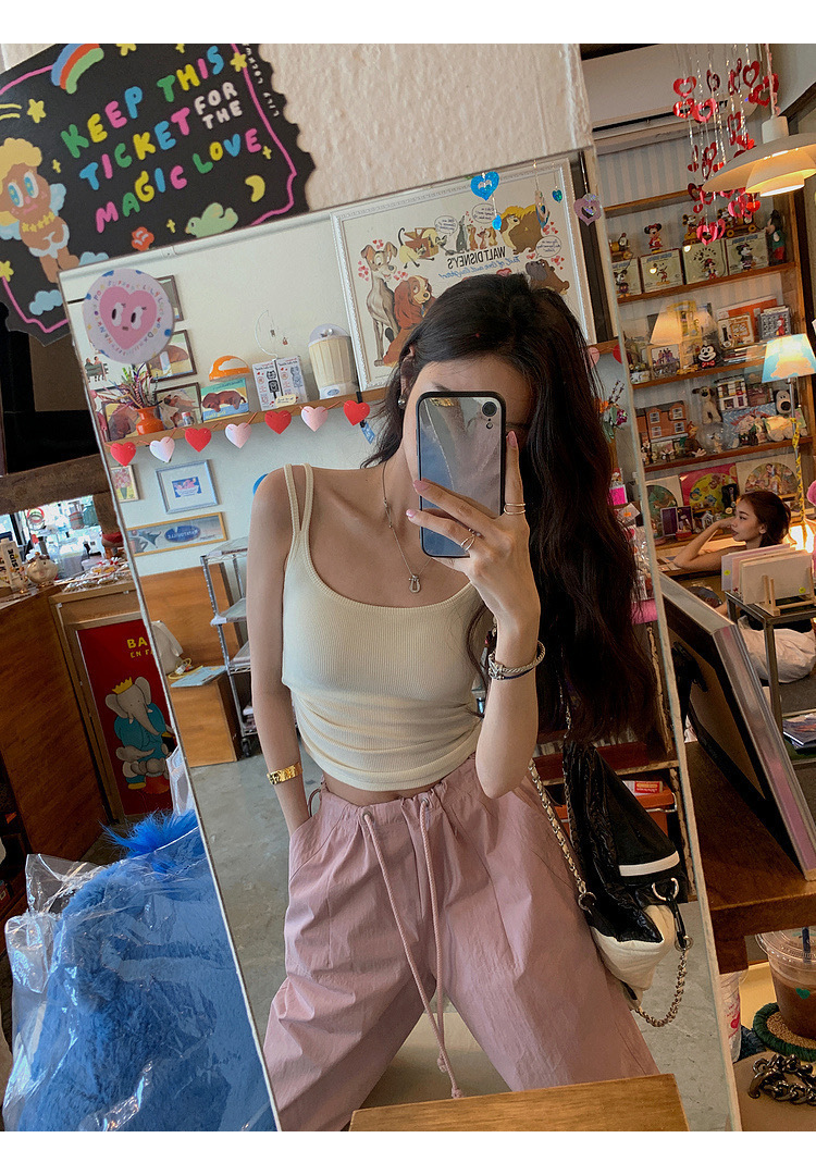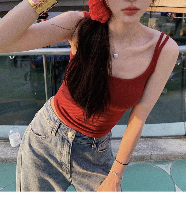 韩版辣妹双肩带吊带背心女修身显瘦百搭带胸垫内衣女美背上衣厂家