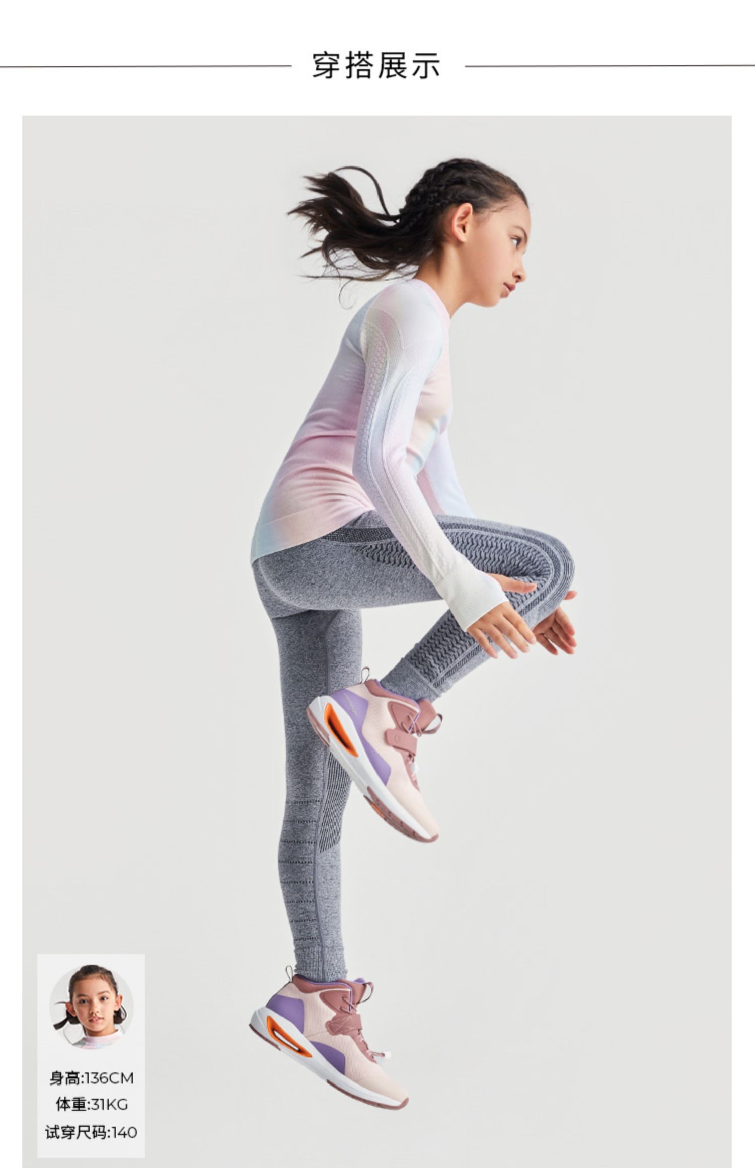 moodytiger女童速干长袖T恤排汗透气运动长袖43210104