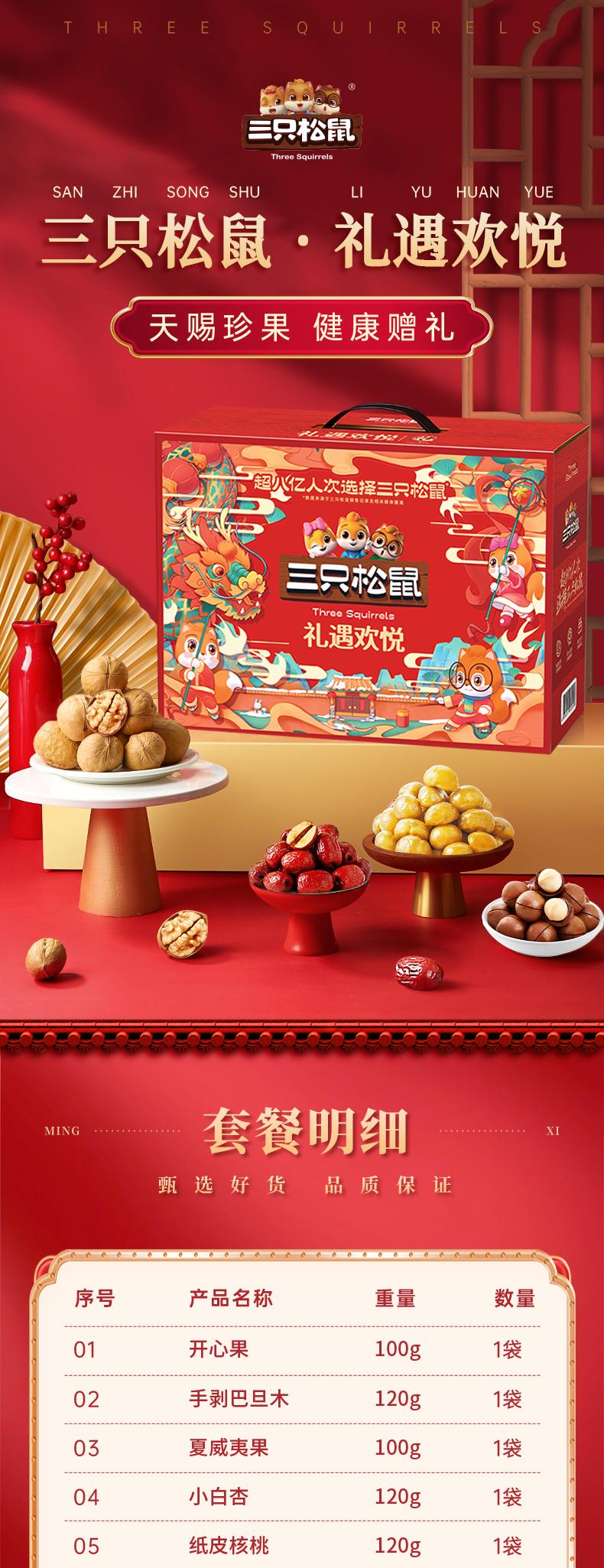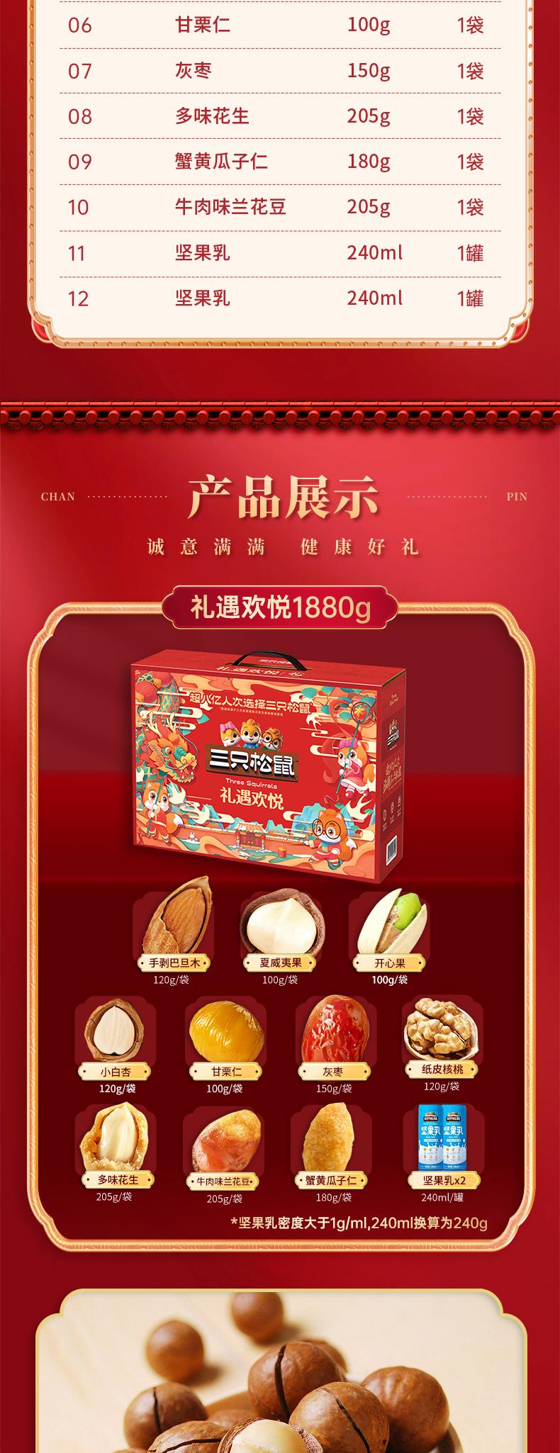 【三只松鼠】 礼遇欢悦 坚果礼盒 约1.88kg12袋装