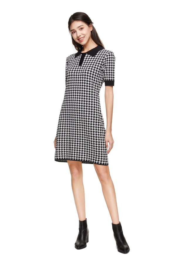 FIVE PLUS(5+) 黑白格纹POLO式连衣裙 8912