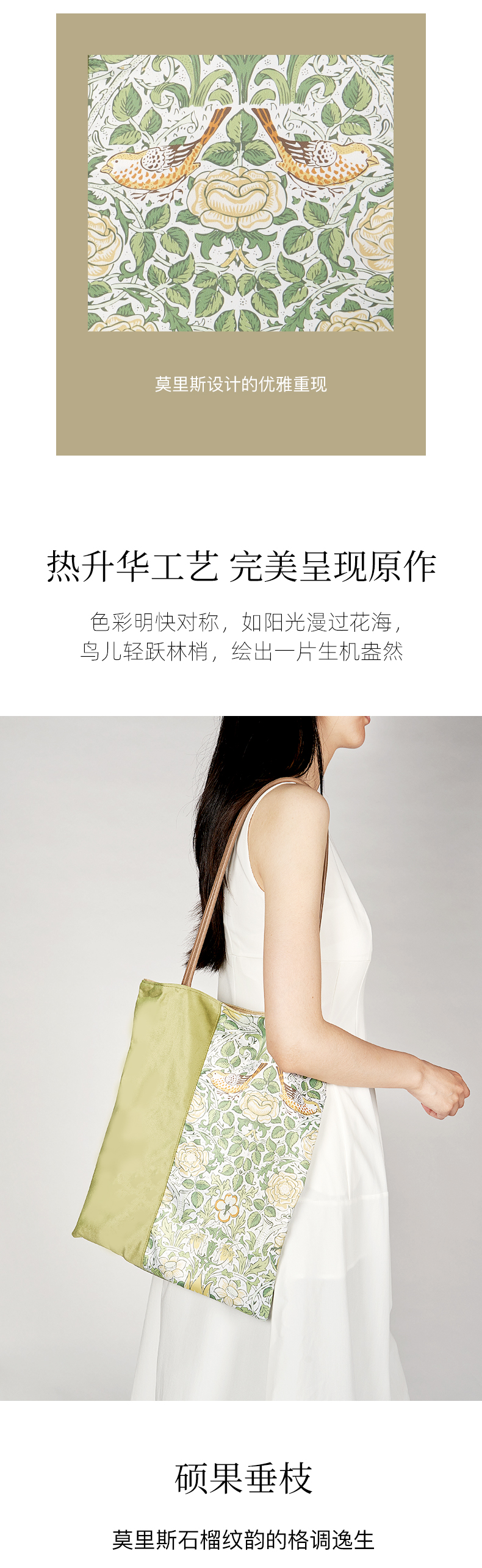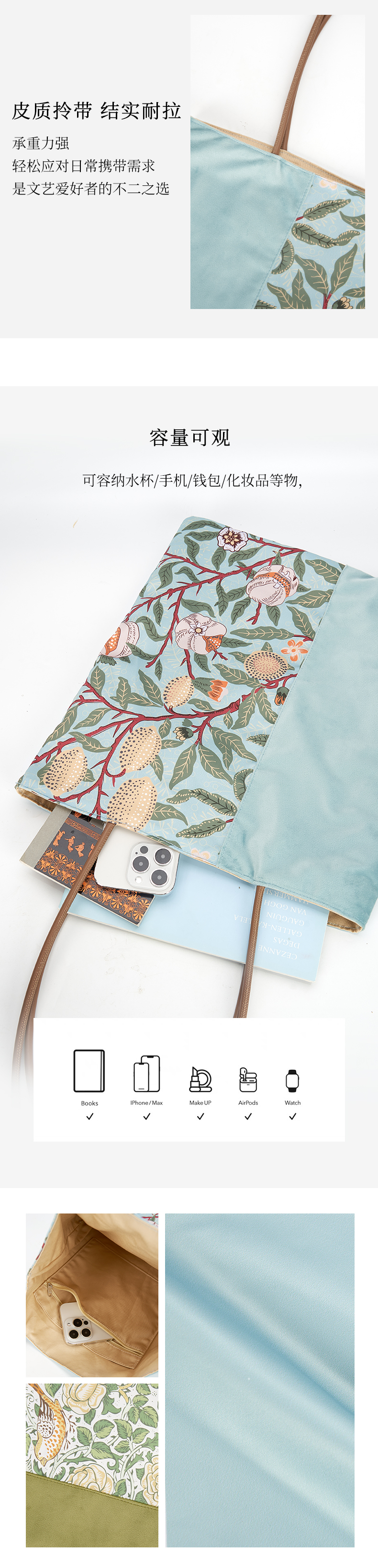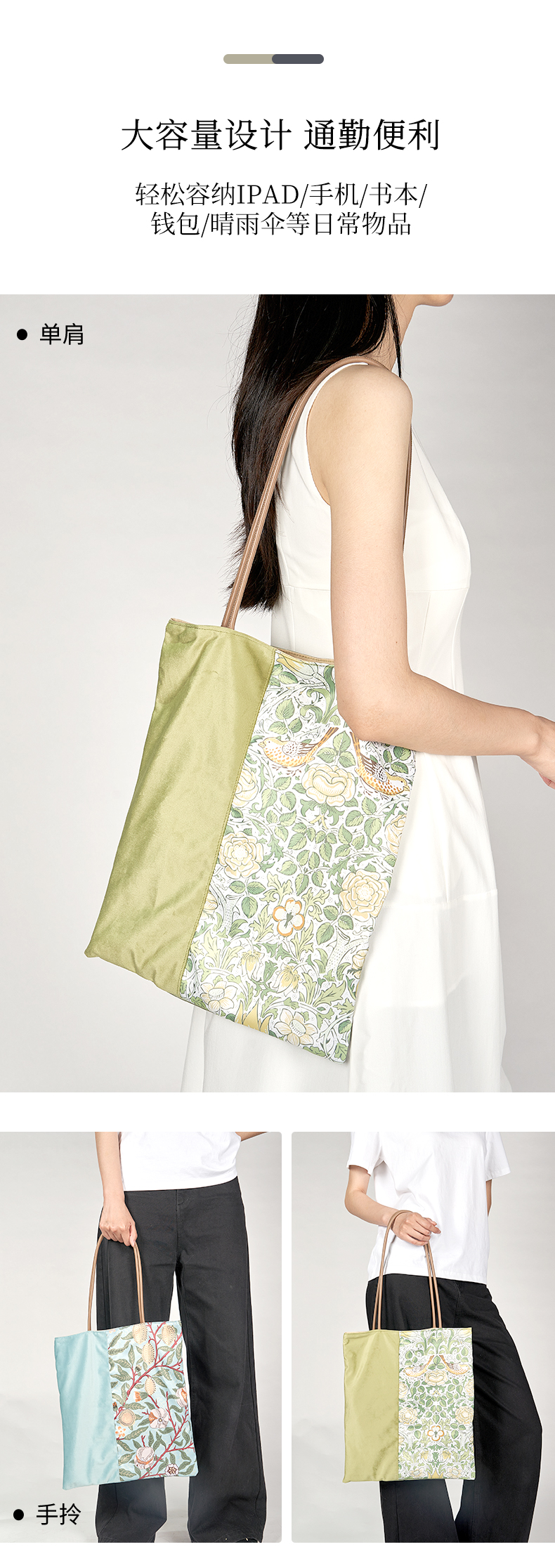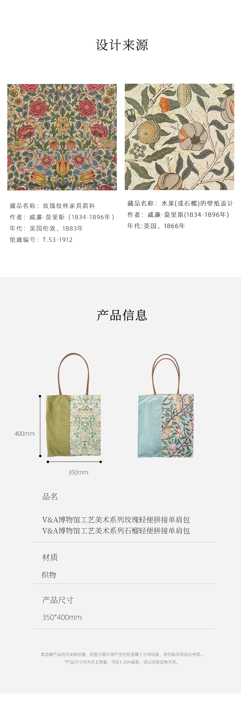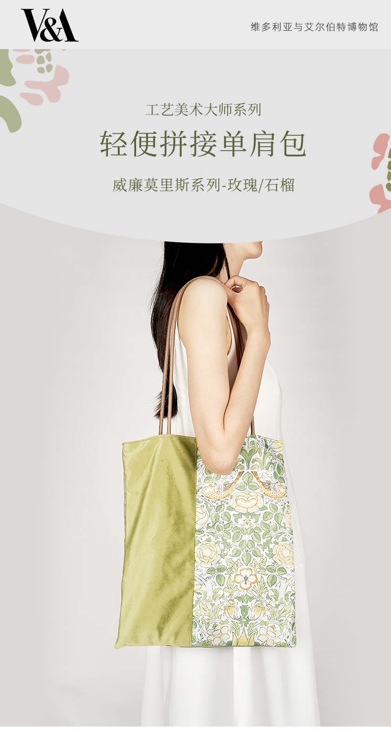 V&A博物馆 工艺美术系列 玫瑰 石榴 轻便拼接单肩包