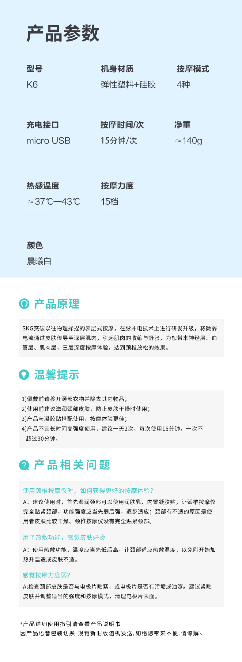 SKG K61-X颈椎按摩仪(晨曦白)礼盒款