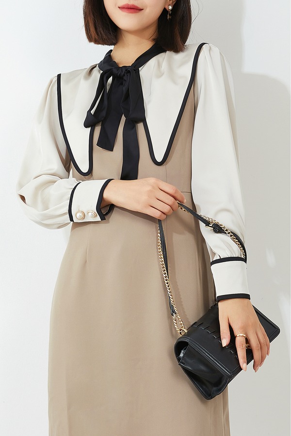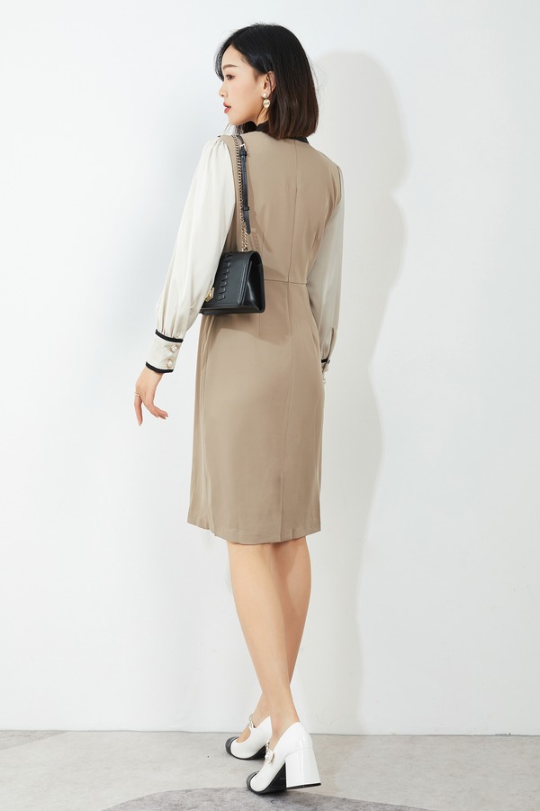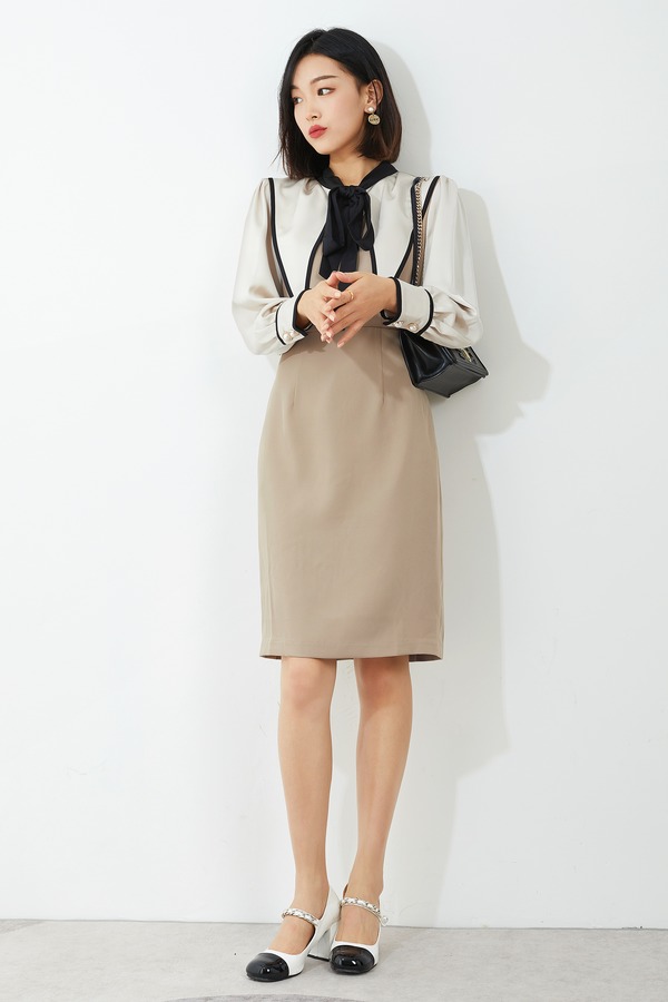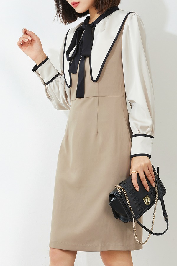amadella 米杏撞色光泽感连衣裙 14130