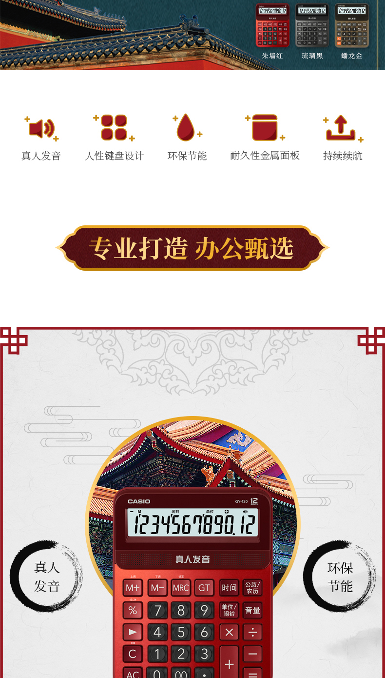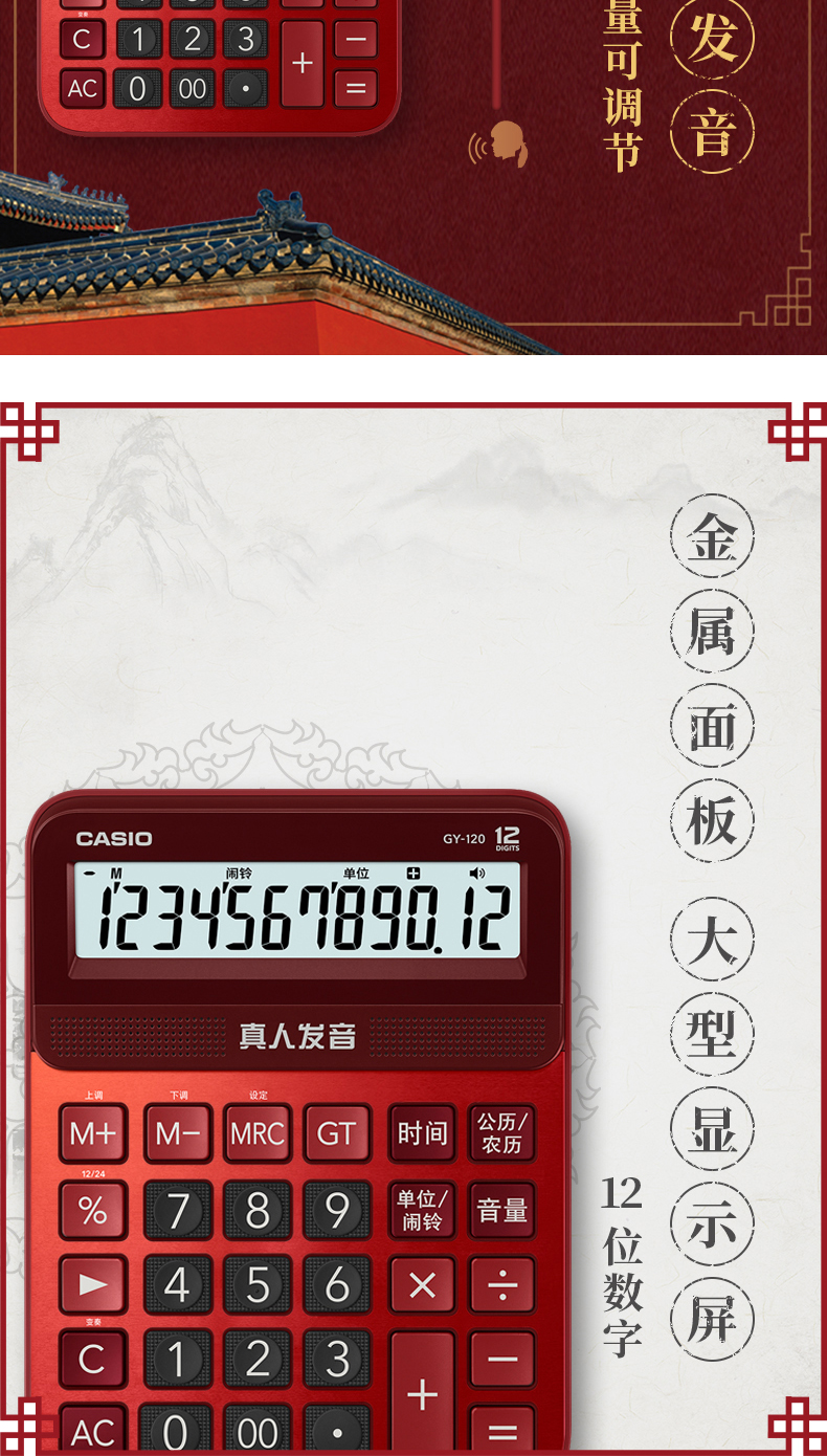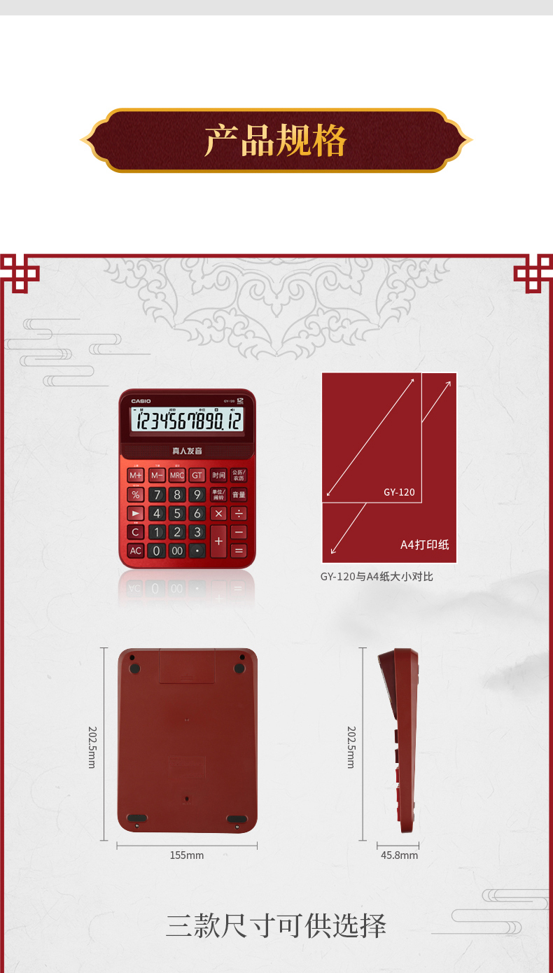 卡西欧计算器 语音机计算器 真人发音 蟠龙金GY-120