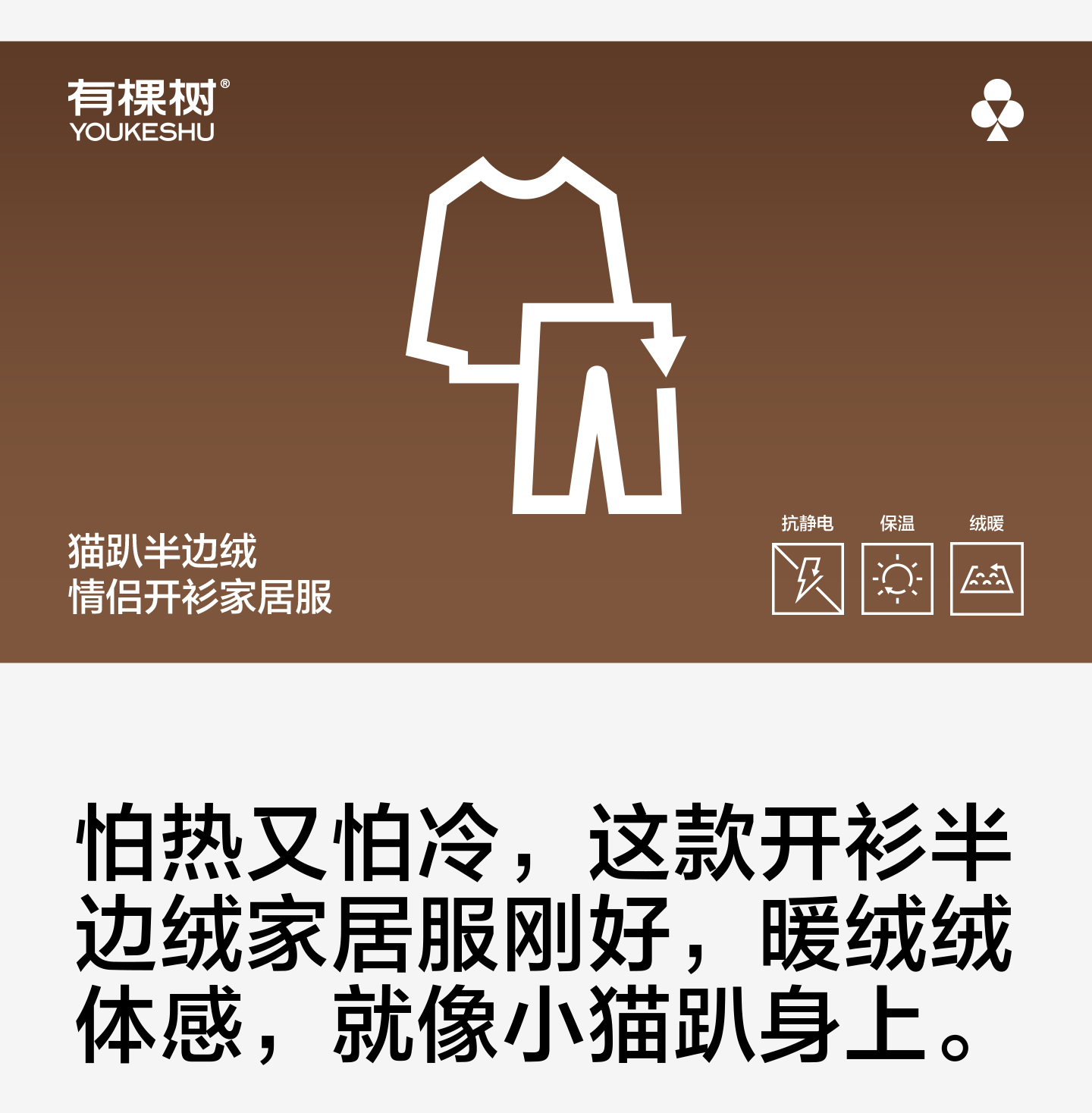 【新品上新】有棵树半边绒抗静电加厚开衫秋冬款情侣家居服套装-S1085