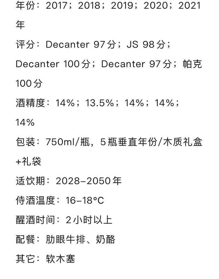 意大利西施佳雅干红垂直年份礼盒套装2017+2018+2019+2020+2021