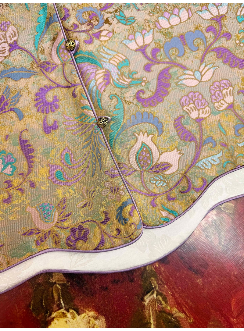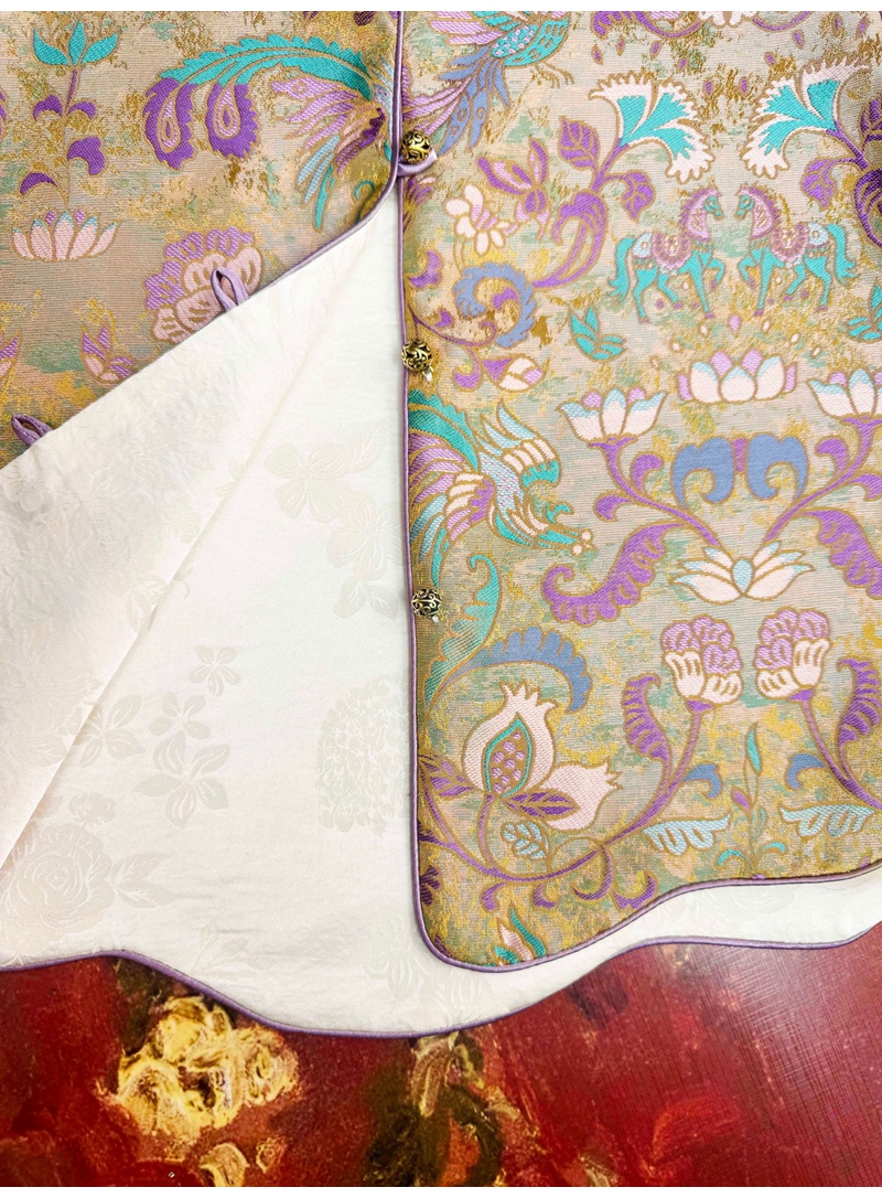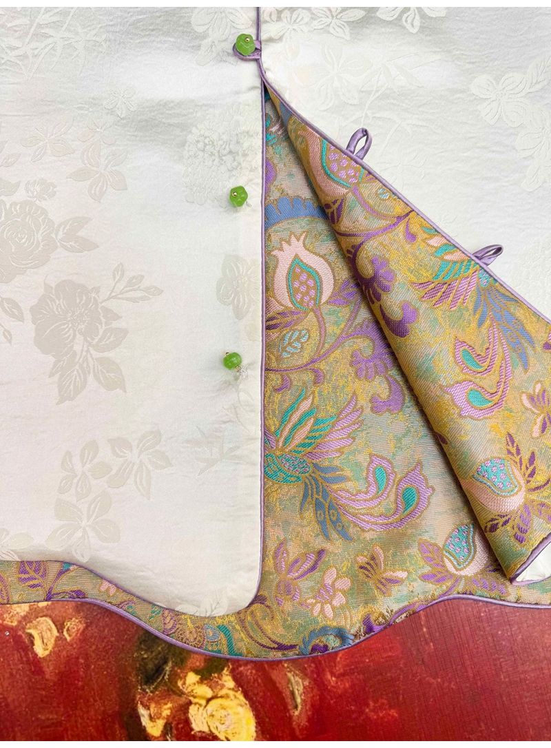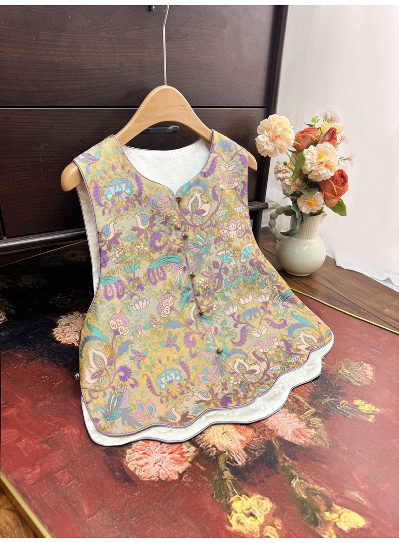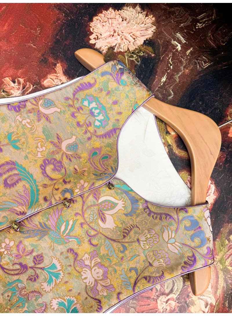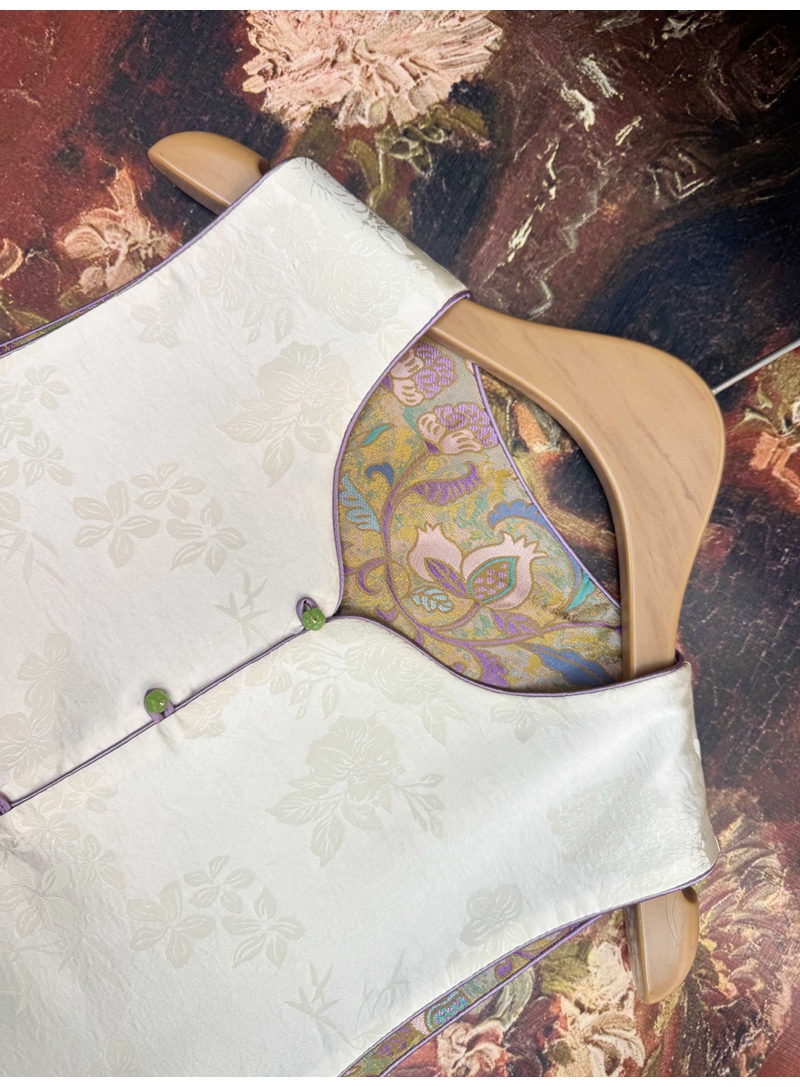新中式双面穿波浪边提花圆领单排扣马甲