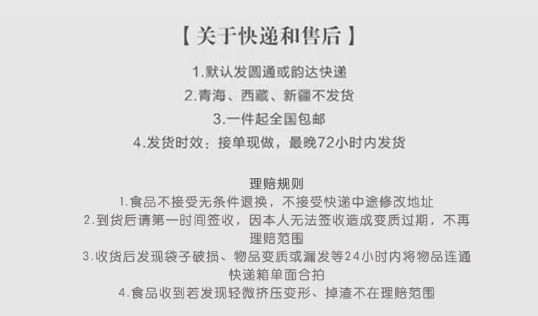★因快递暴力导致箱子变形内物未破损,不影响食用,不在售后范围内,不赔付;