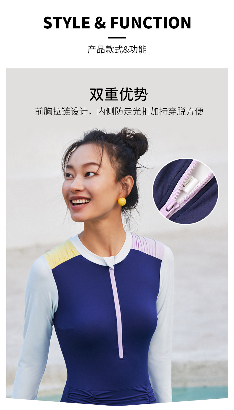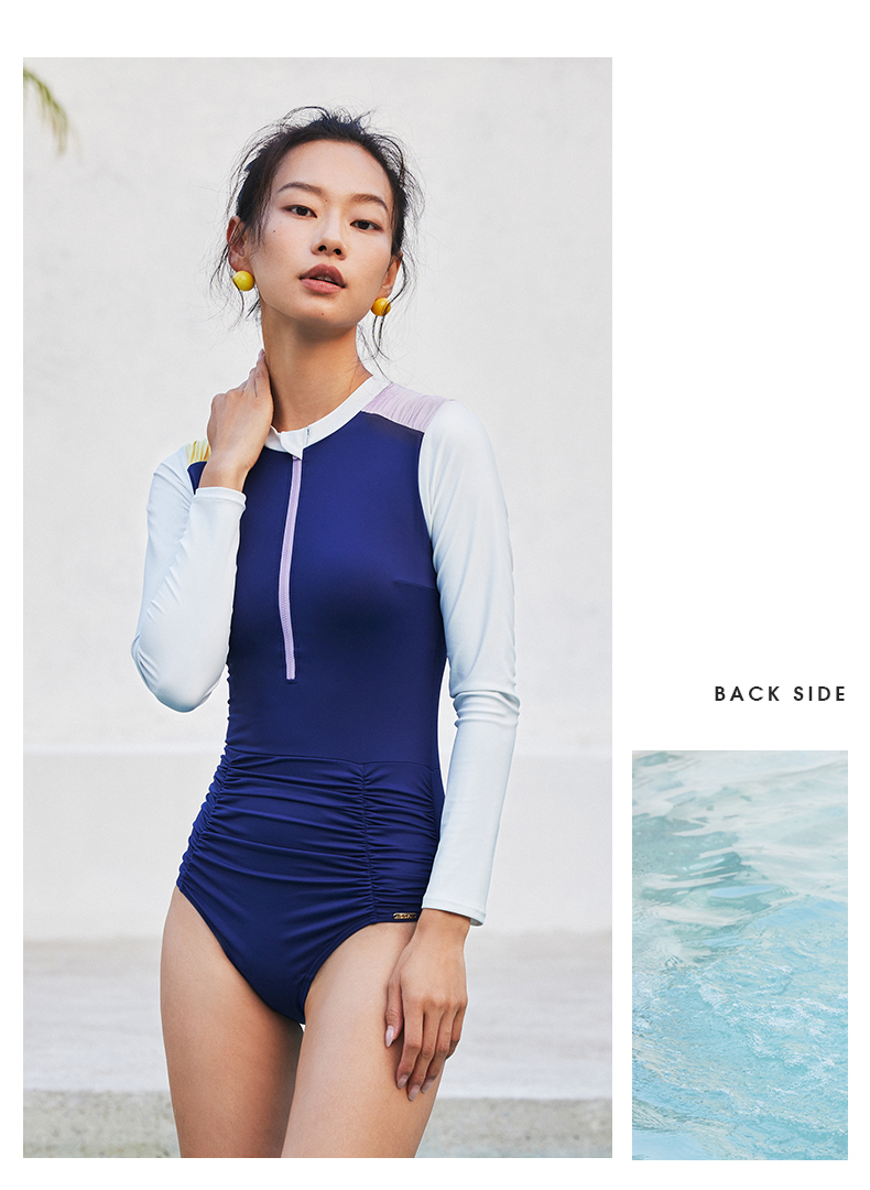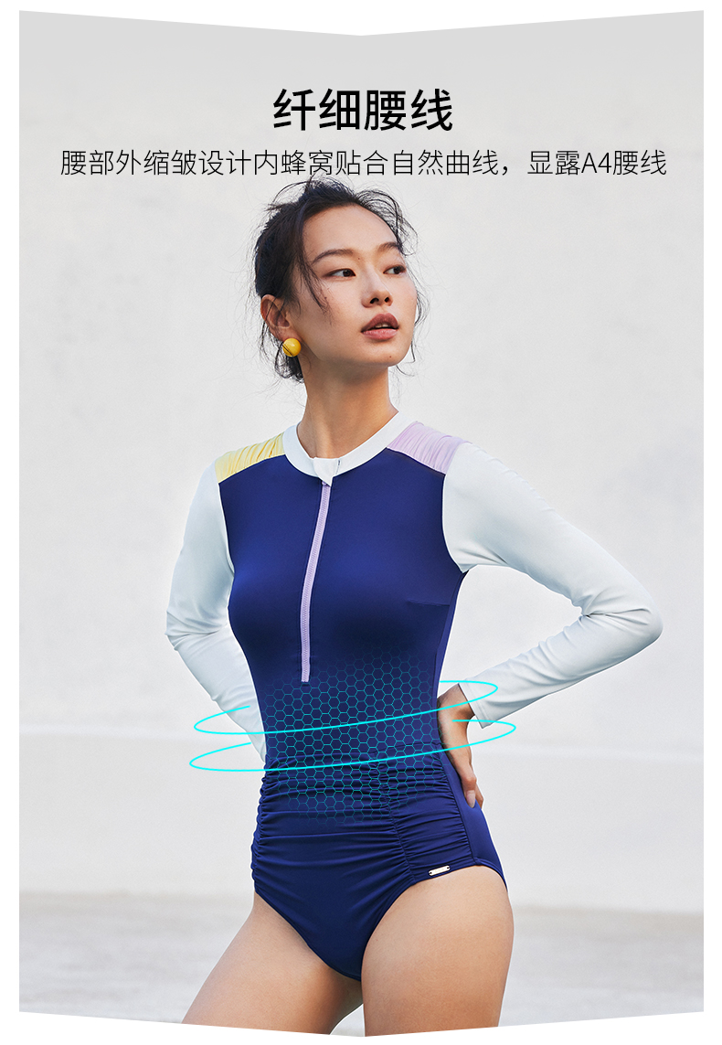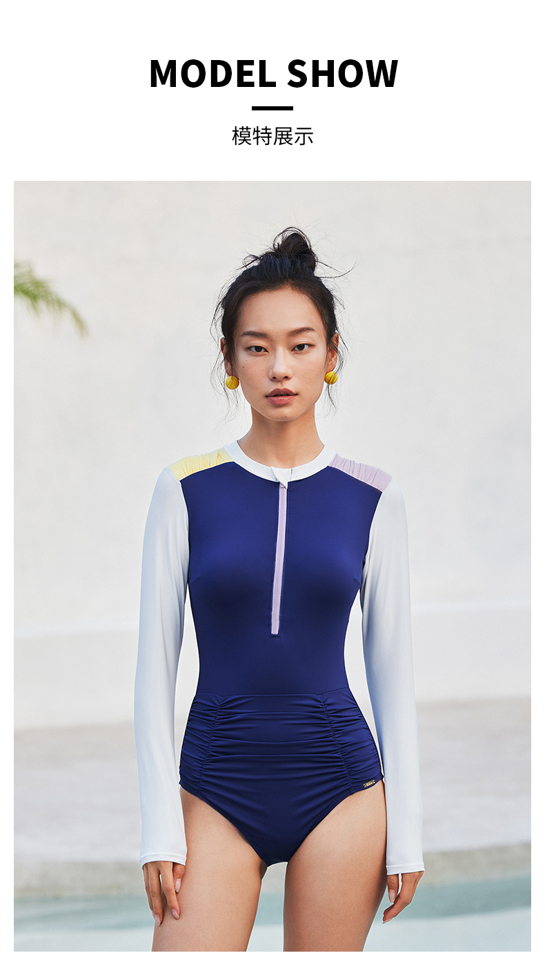sisia连身泳衣女微胖女孩遮肉游泳衣长袖防晒连体泳衣女2024新款