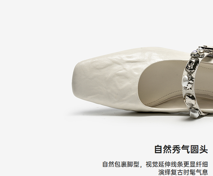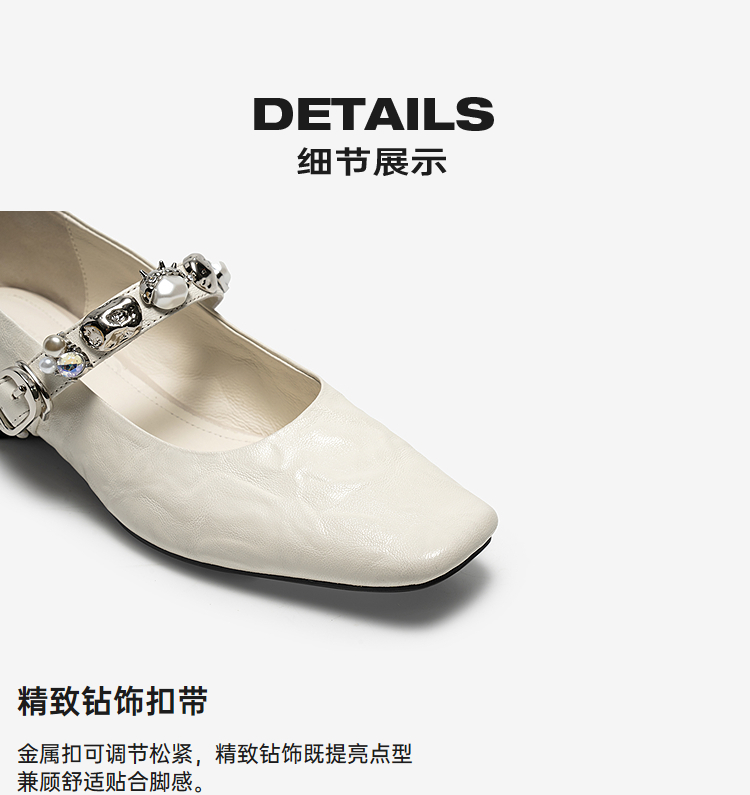 千百度低跟珍珠玛丽珍鞋女羊皮平底晚晚鞋浅口单鞋A25480059