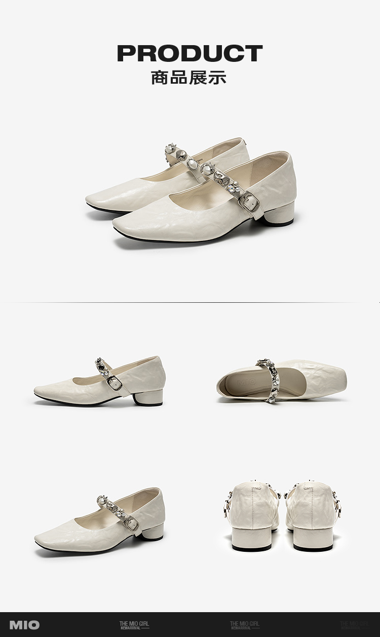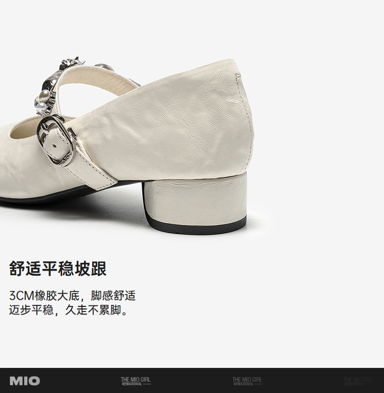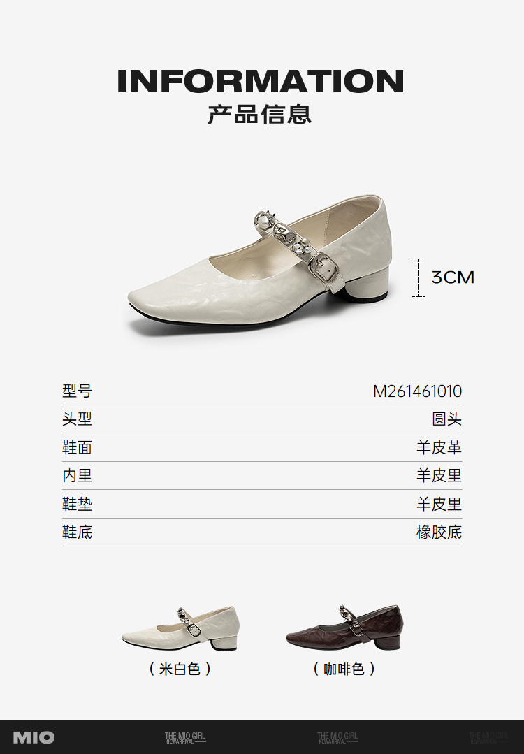 MIO米奥玛丽珍鞋2026春季新款粗跟单鞋一字带金属扣闪钻饰扣女鞋M261461010