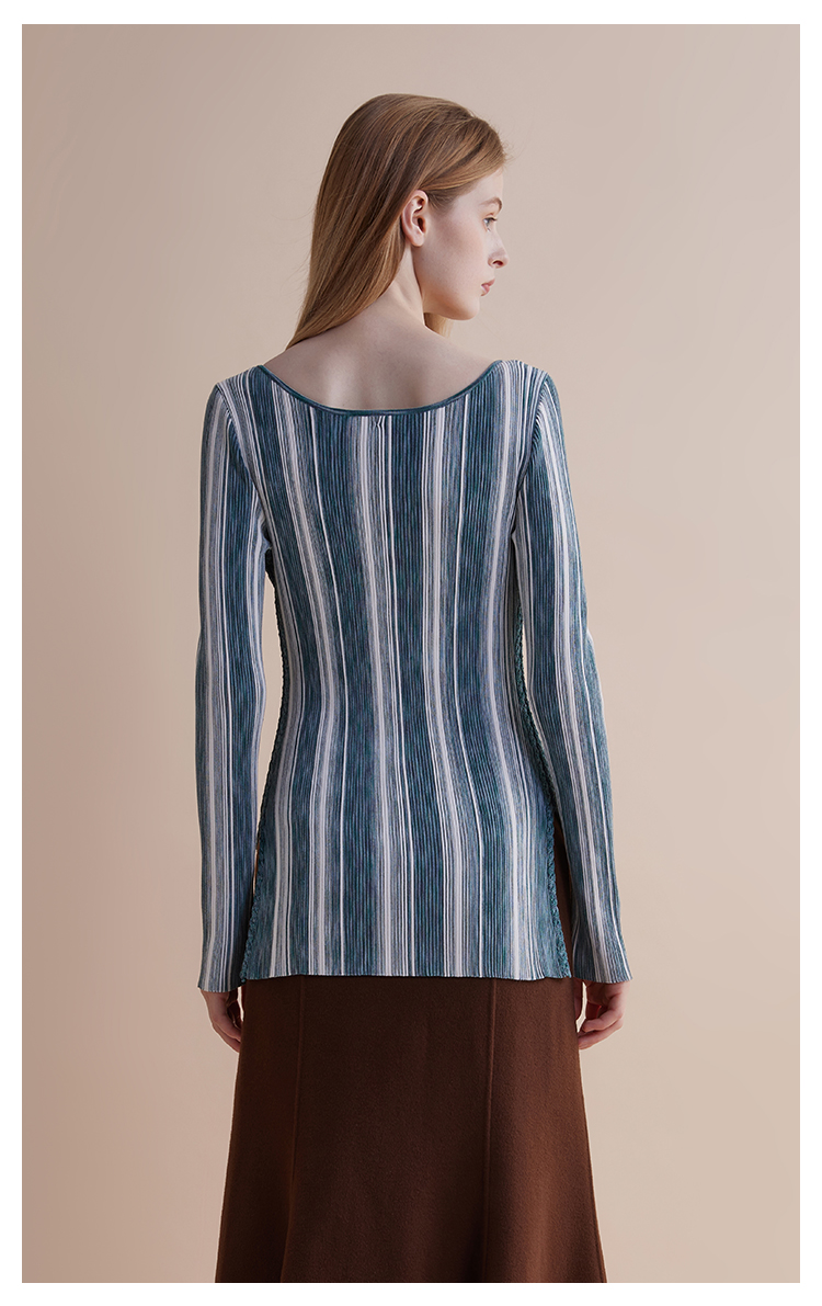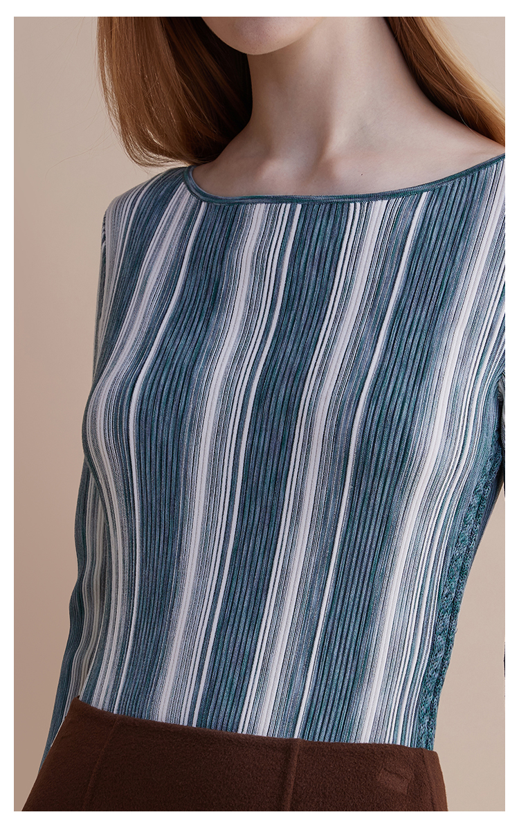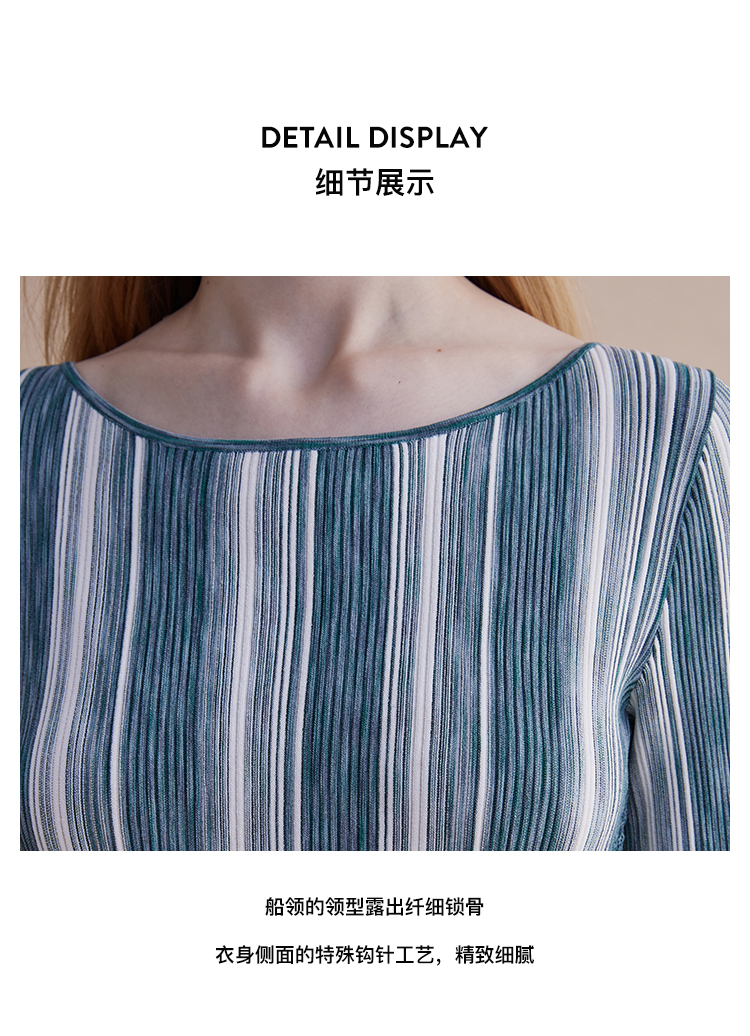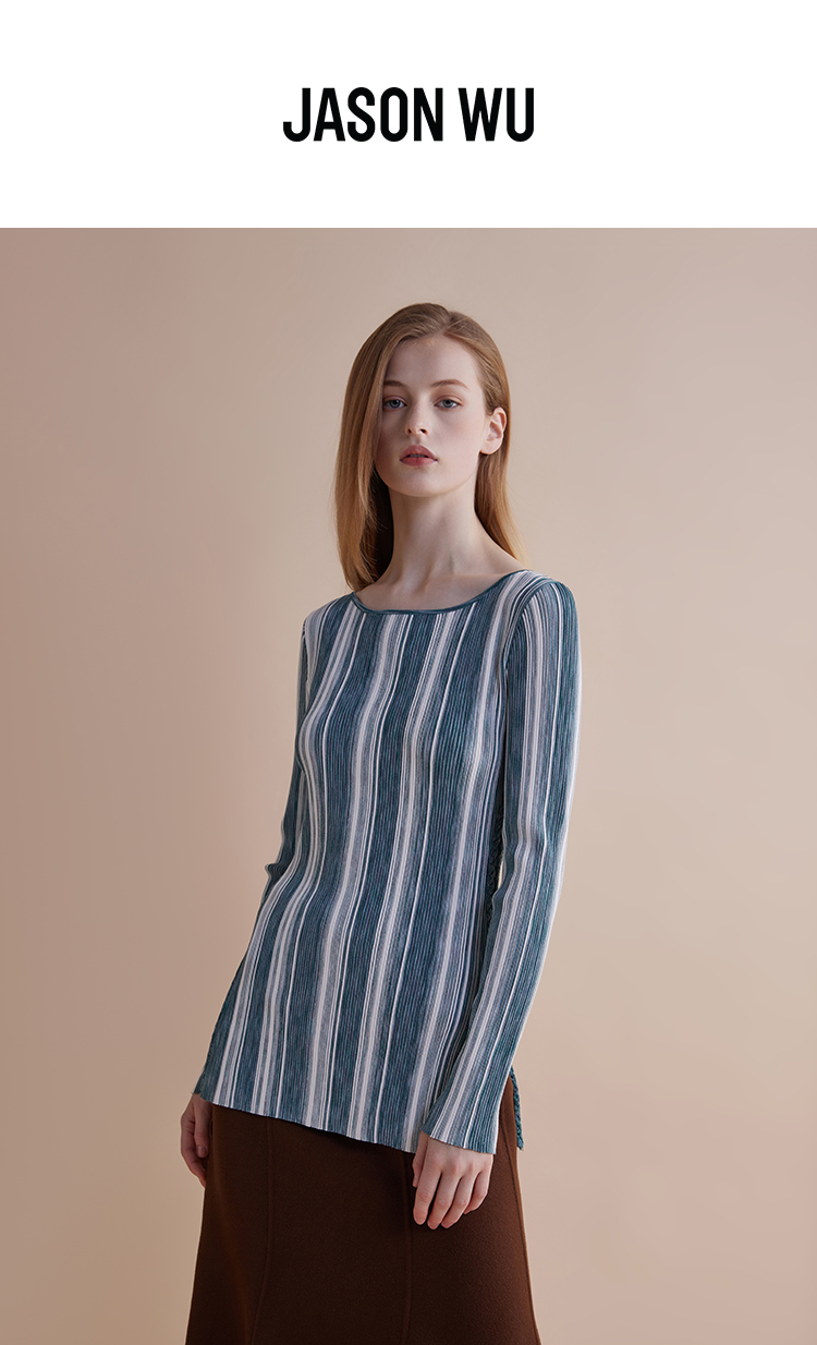 【JASON WU】春夏新款双色一字领套头上衣毛衫毛针织衫女