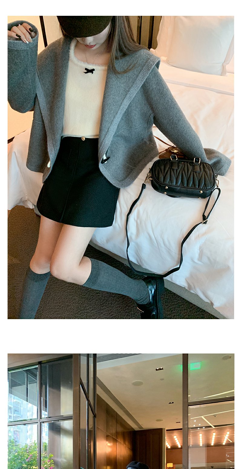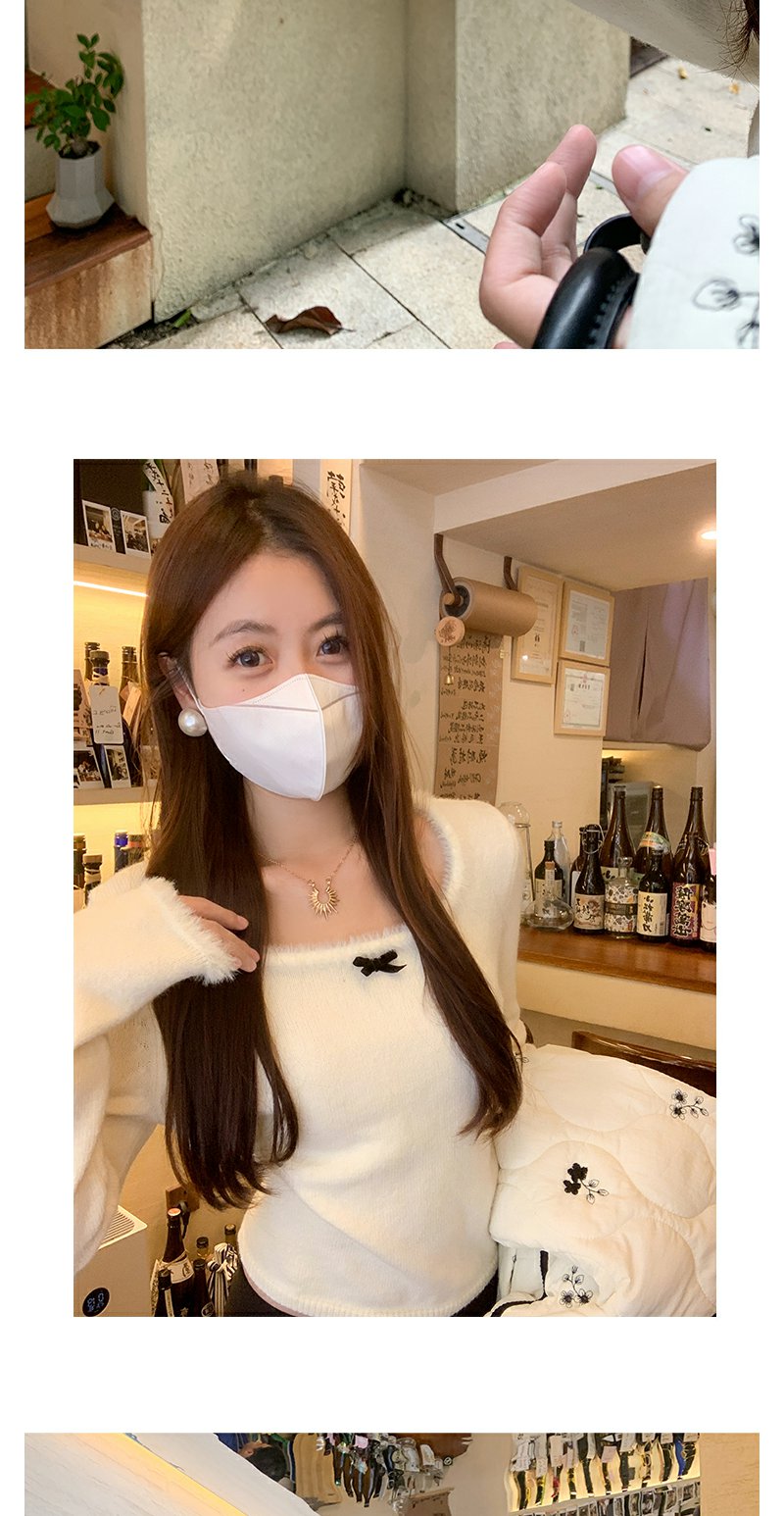 <曾小咸推荐>杏色方领蝴蝶结针织衫打底衫