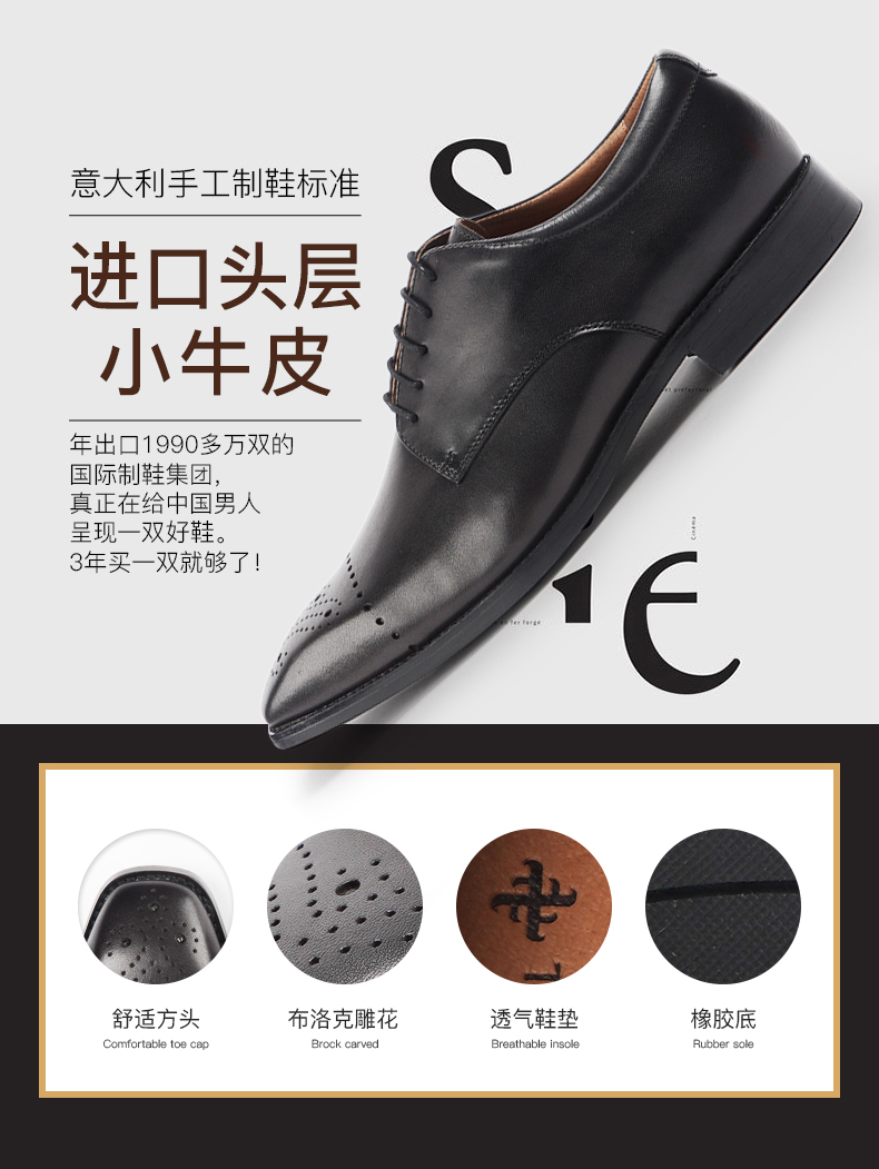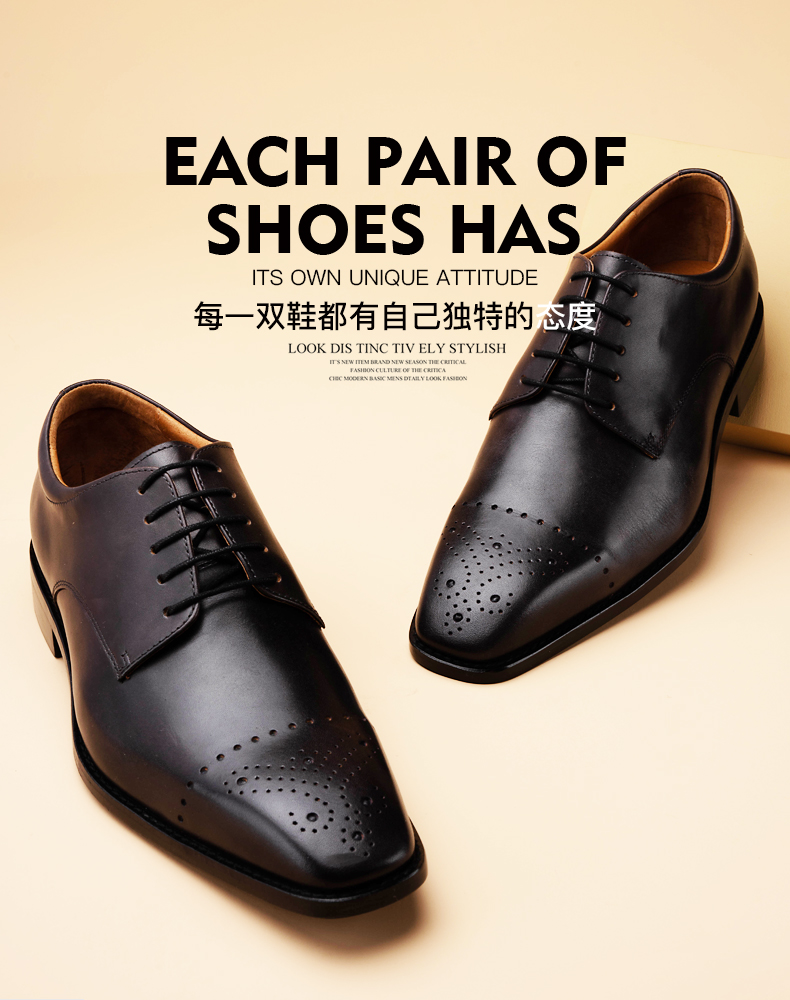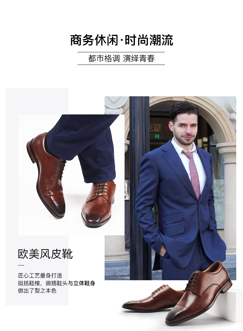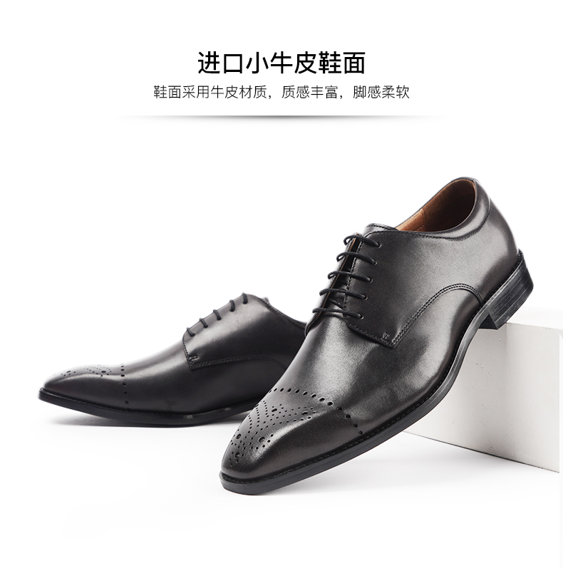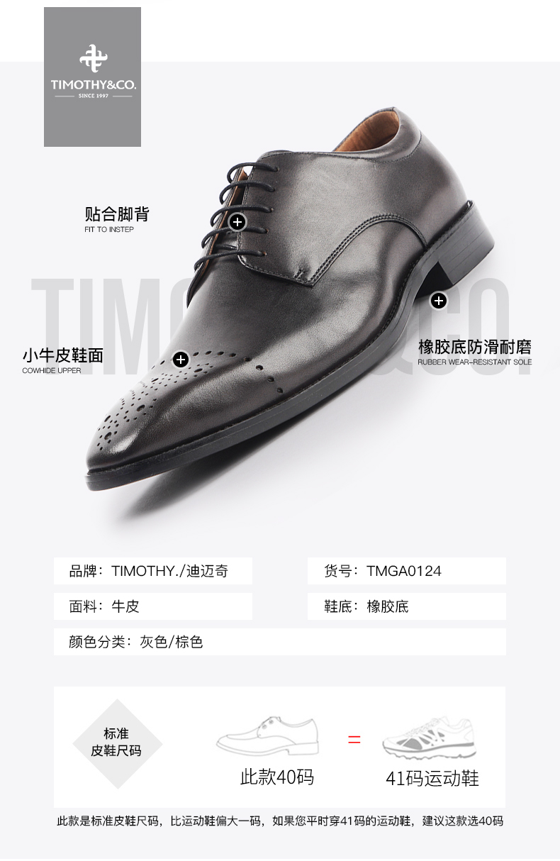 迪迈奇正装布洛克头层牛皮系带皮鞋英伦风商务潮流韩版 男鞋