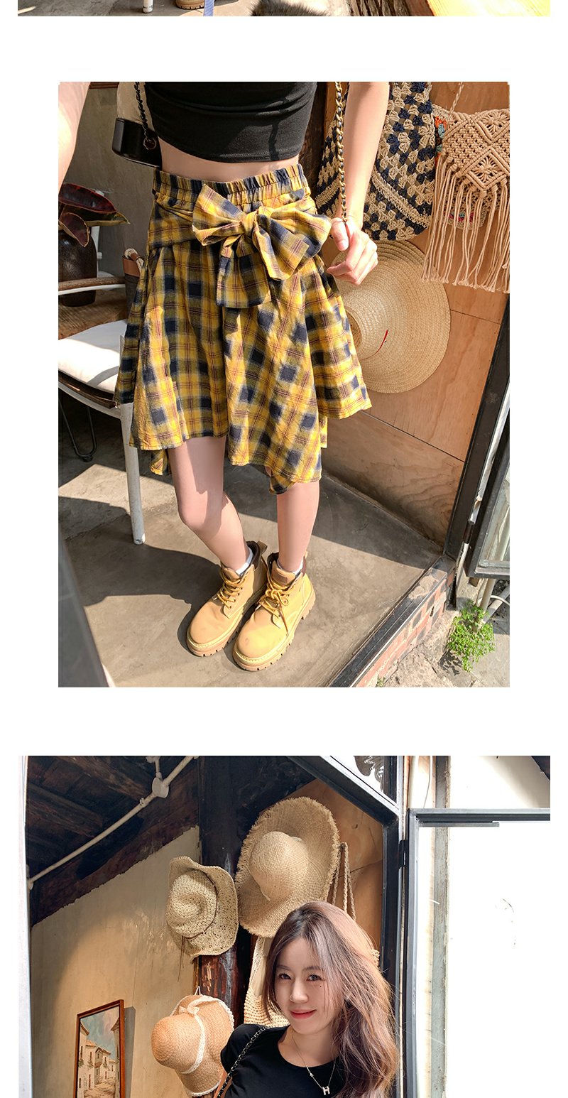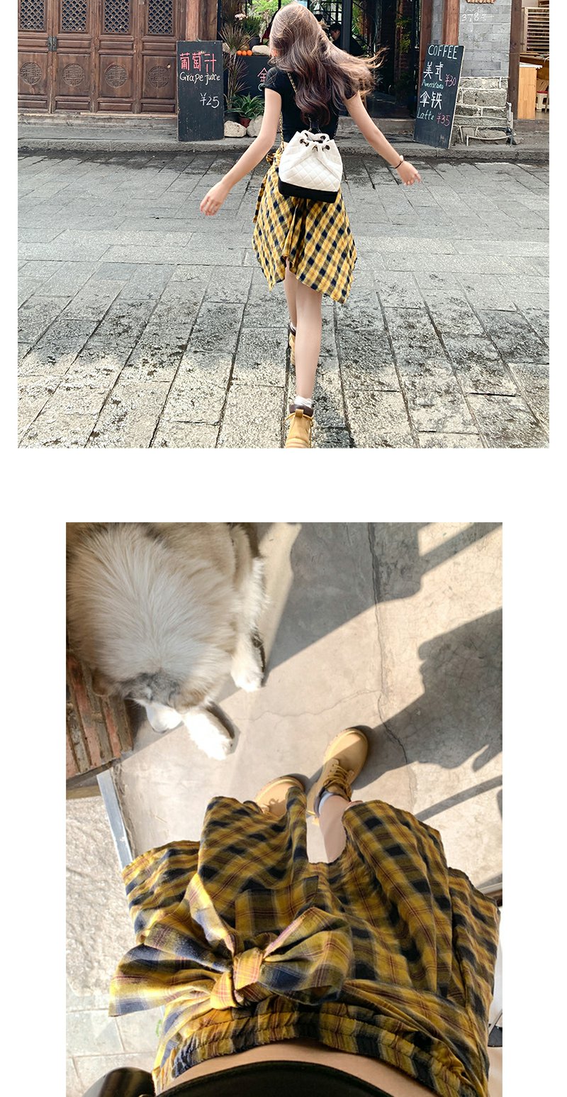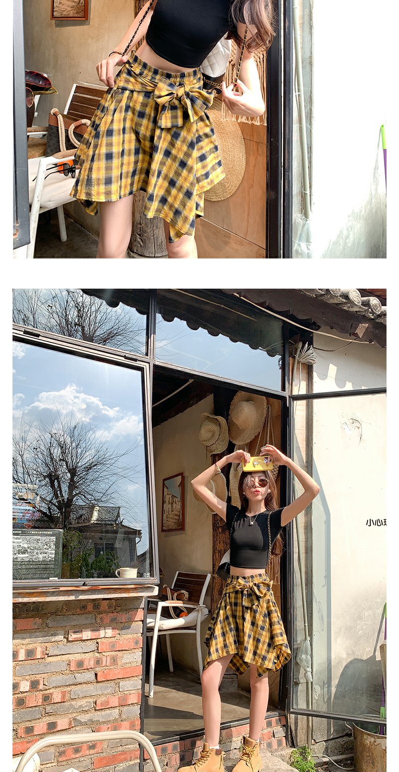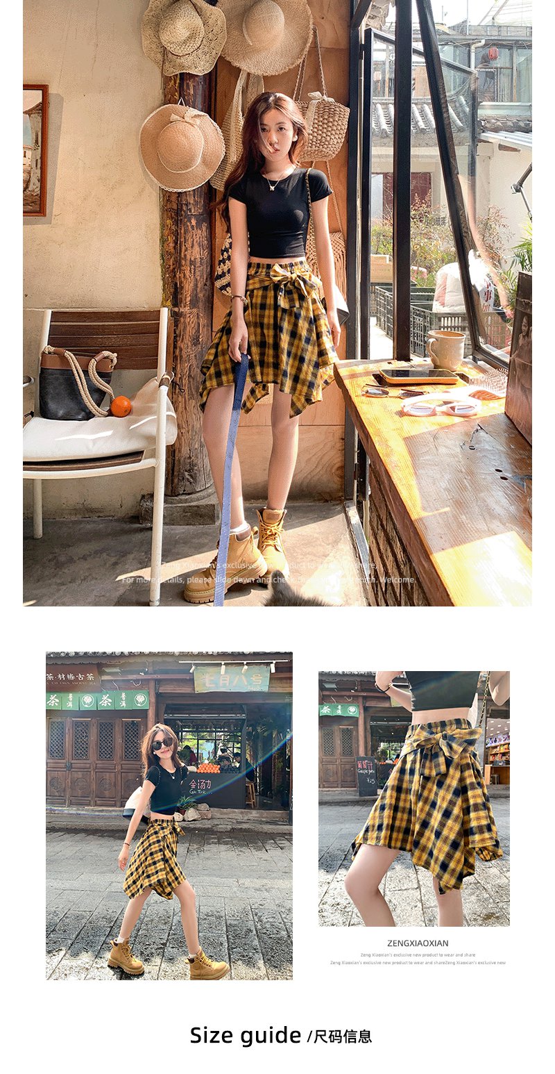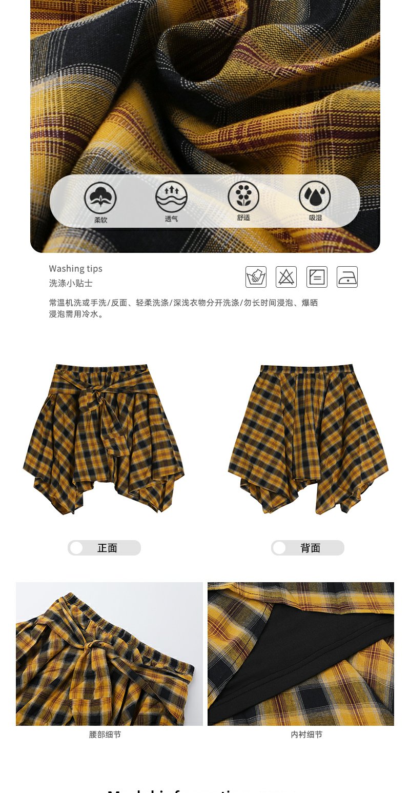 <曾小咸推荐>韩系设计感不规则黄色格子半身裙