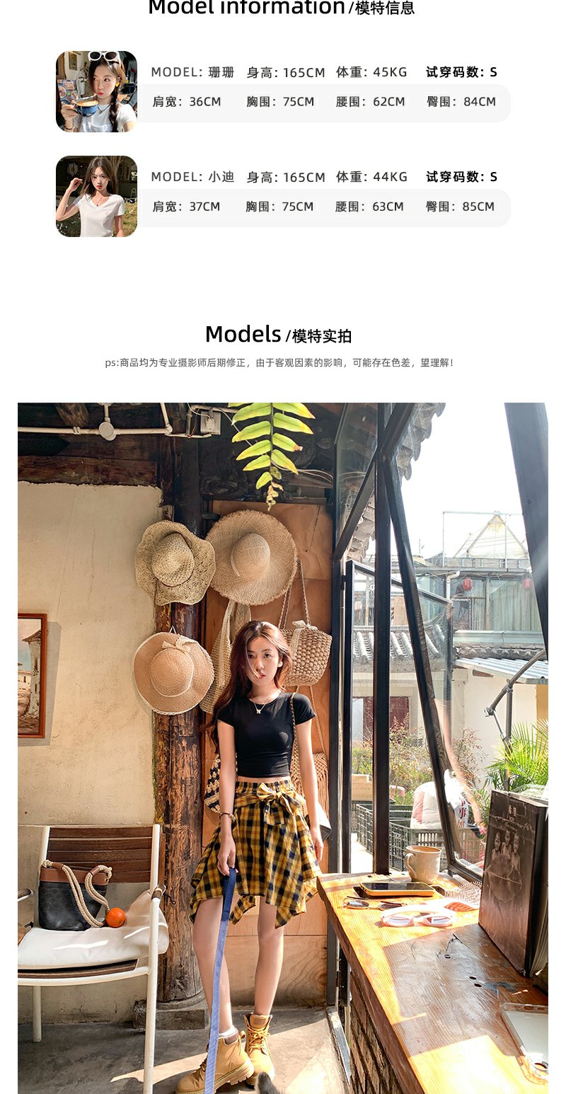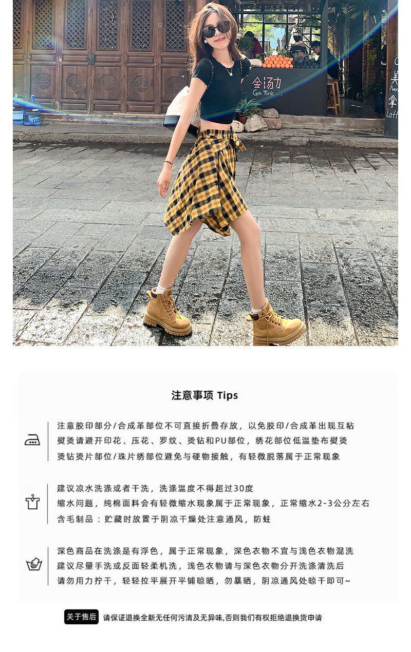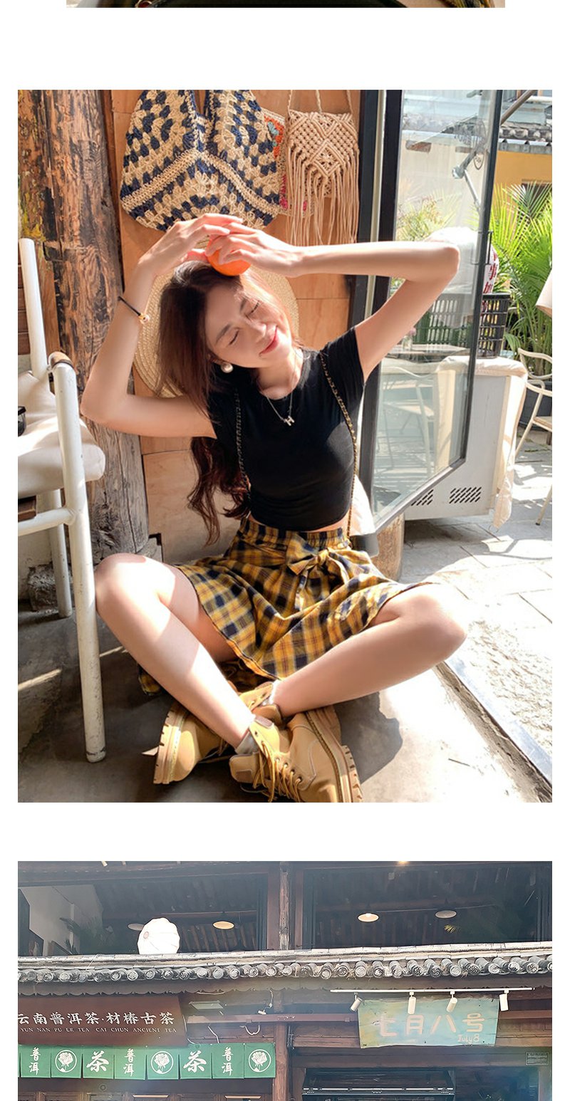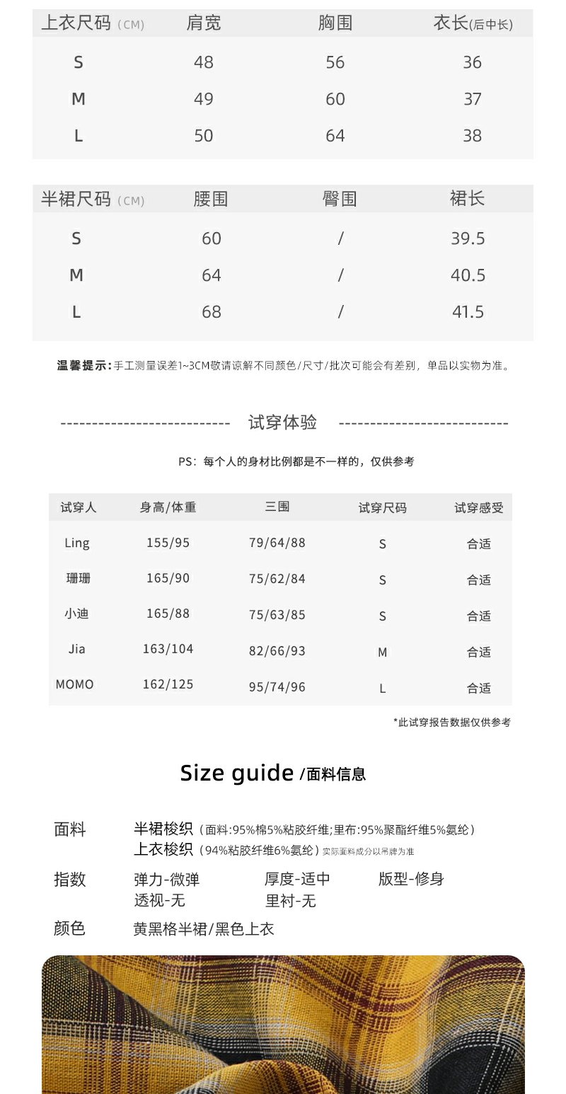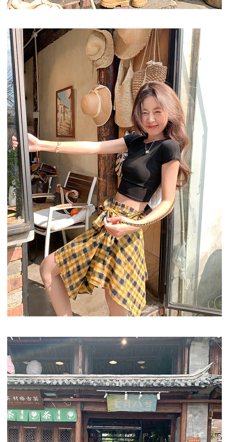 <曾小咸推荐>韩系设计感不规则黄色格子半身裙