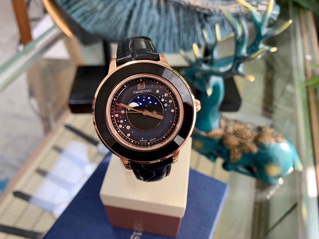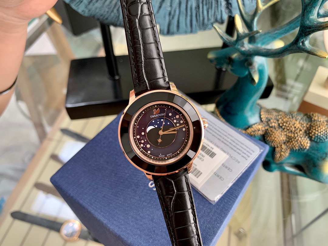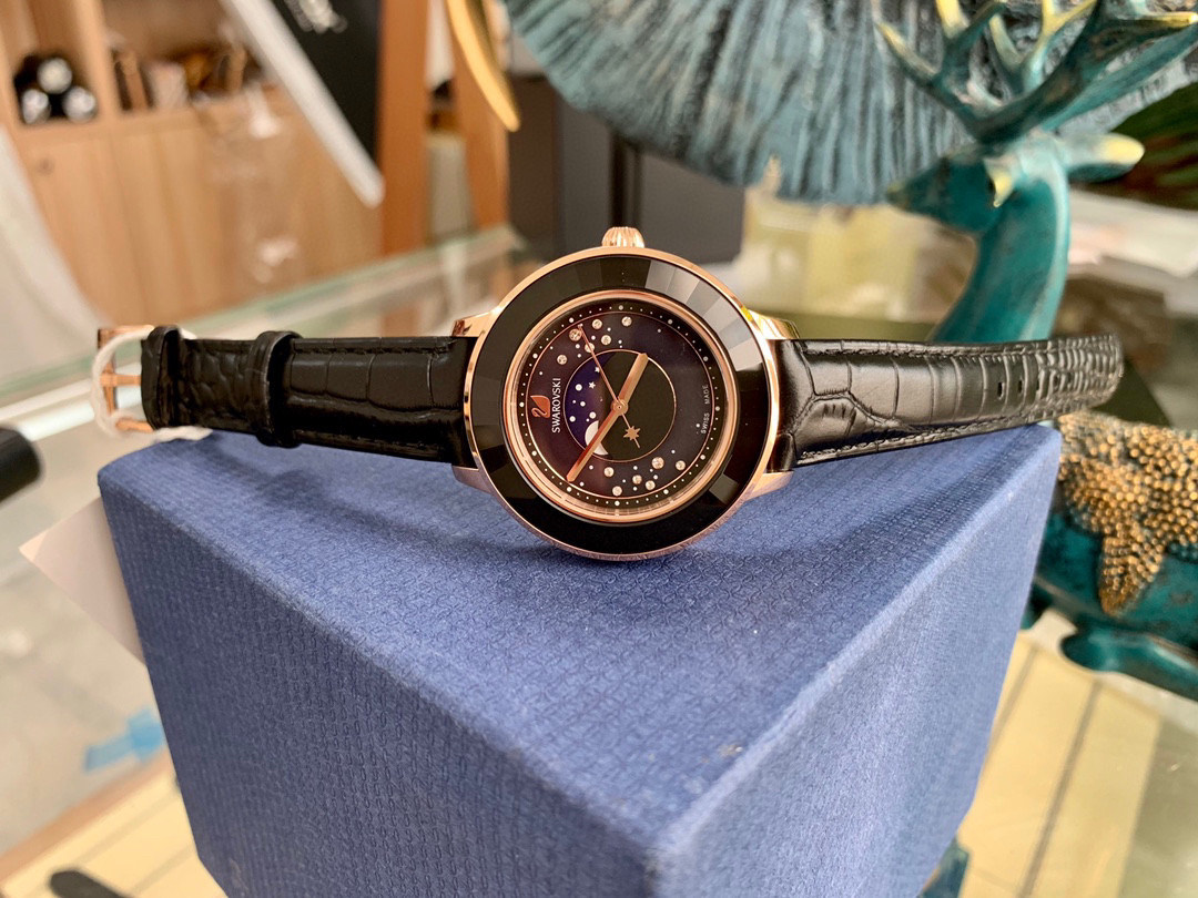 Swarovski施华洛世奇 纪念50周年登月限量款月相手表(黑色款玫瑰金色)