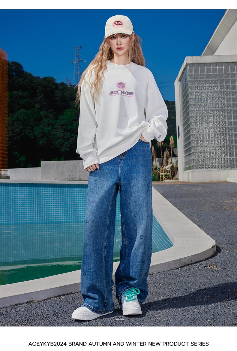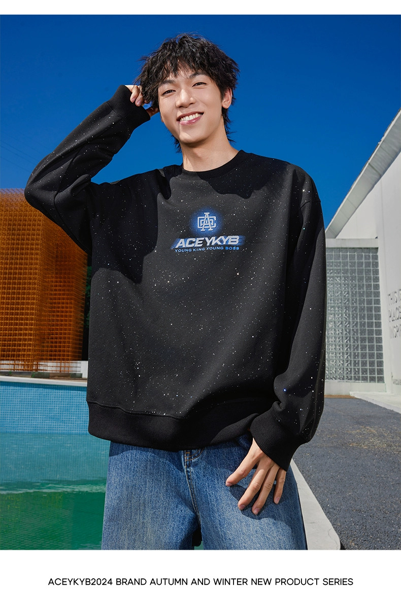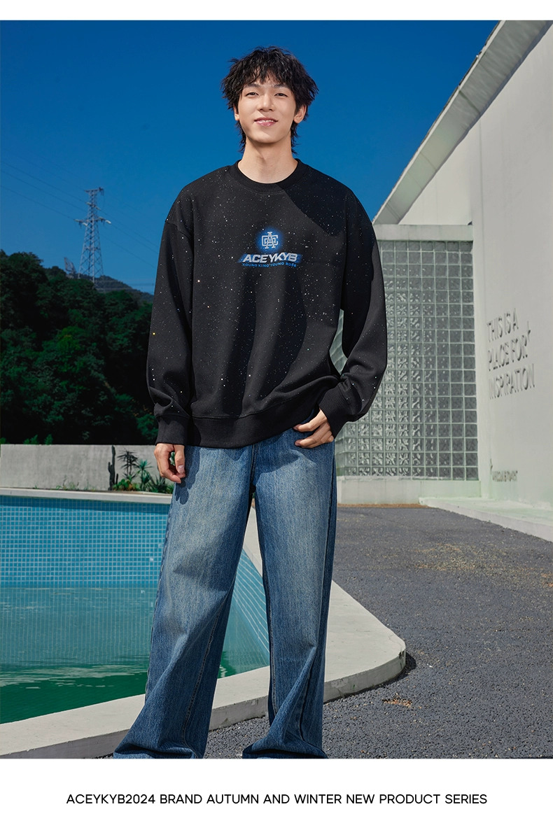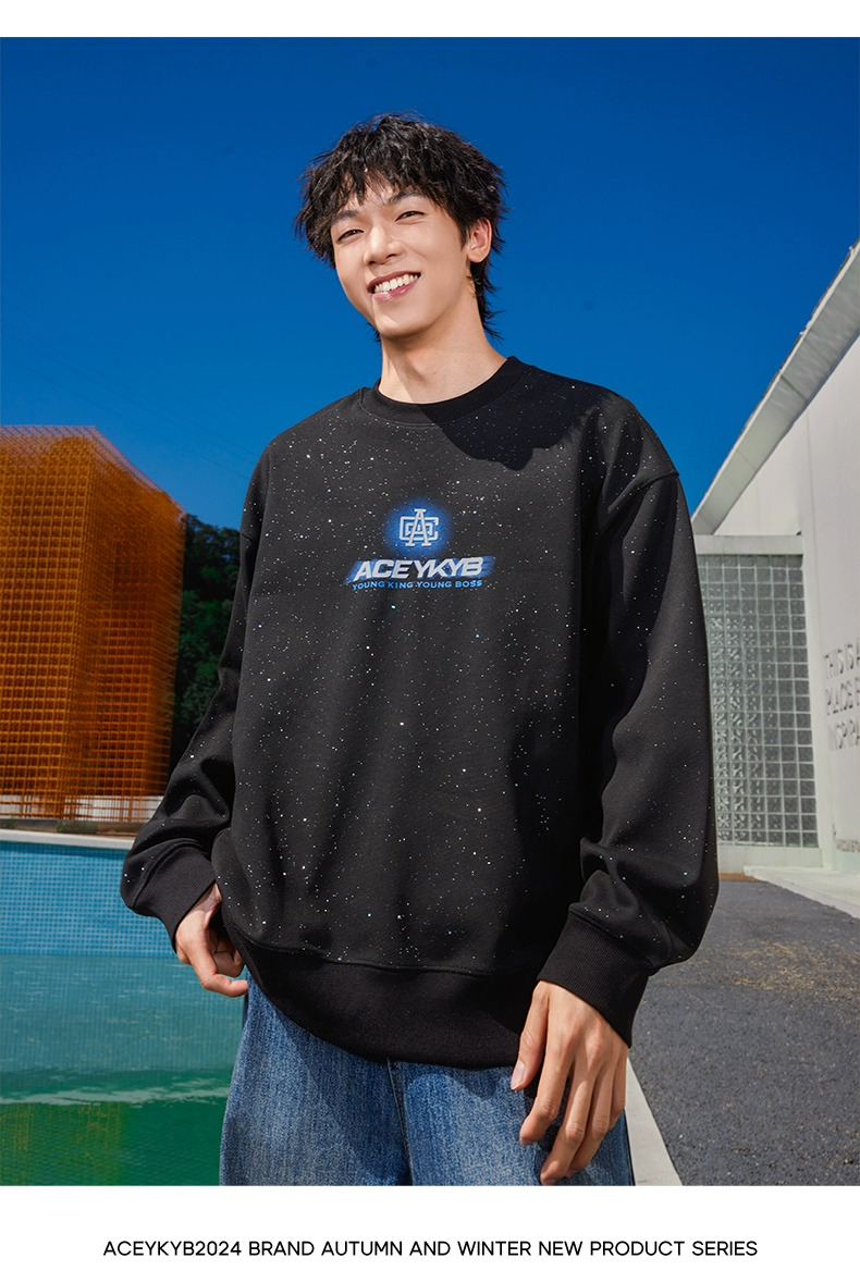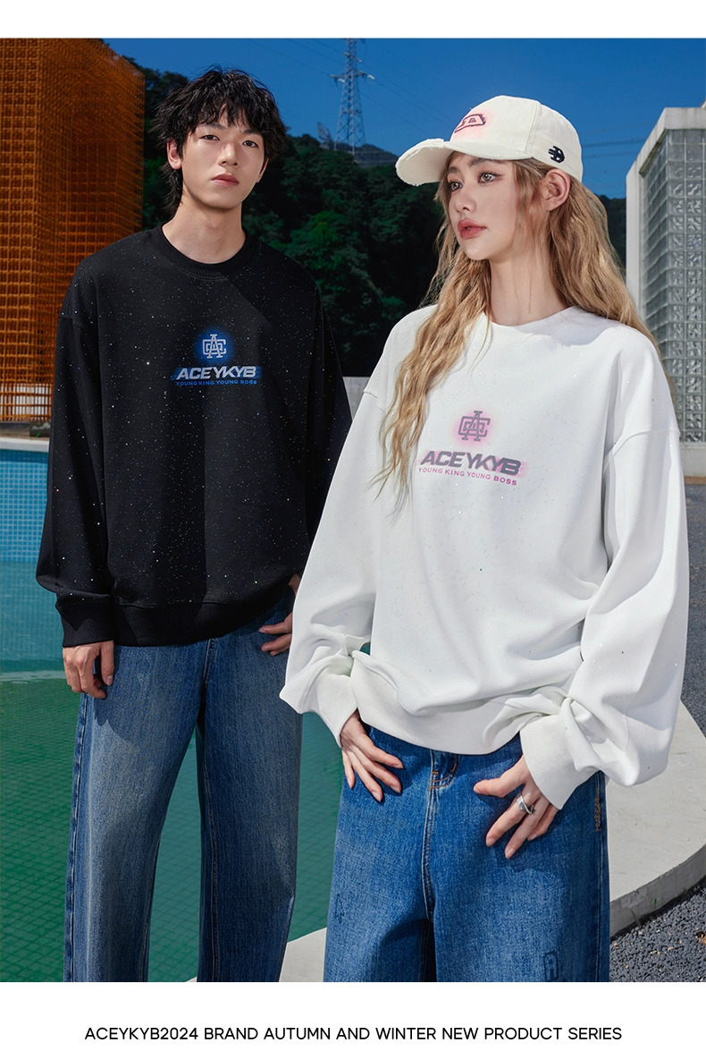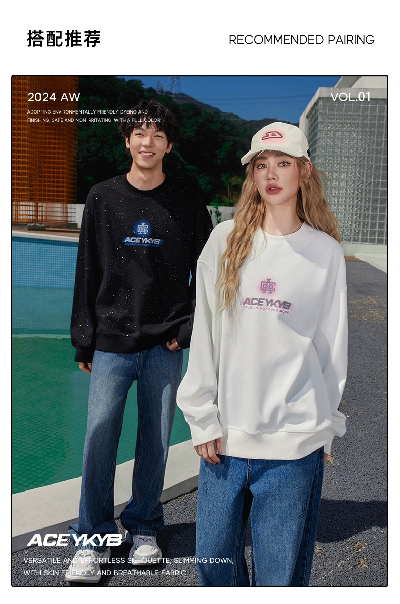 YKYB黄子韬秋季新款上衣潮流亮闪美式街头休闲圆领套头宽松卫衣
