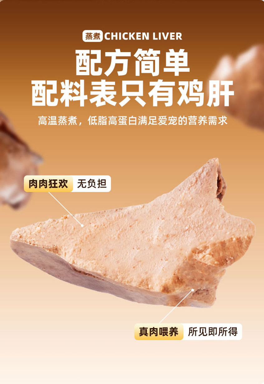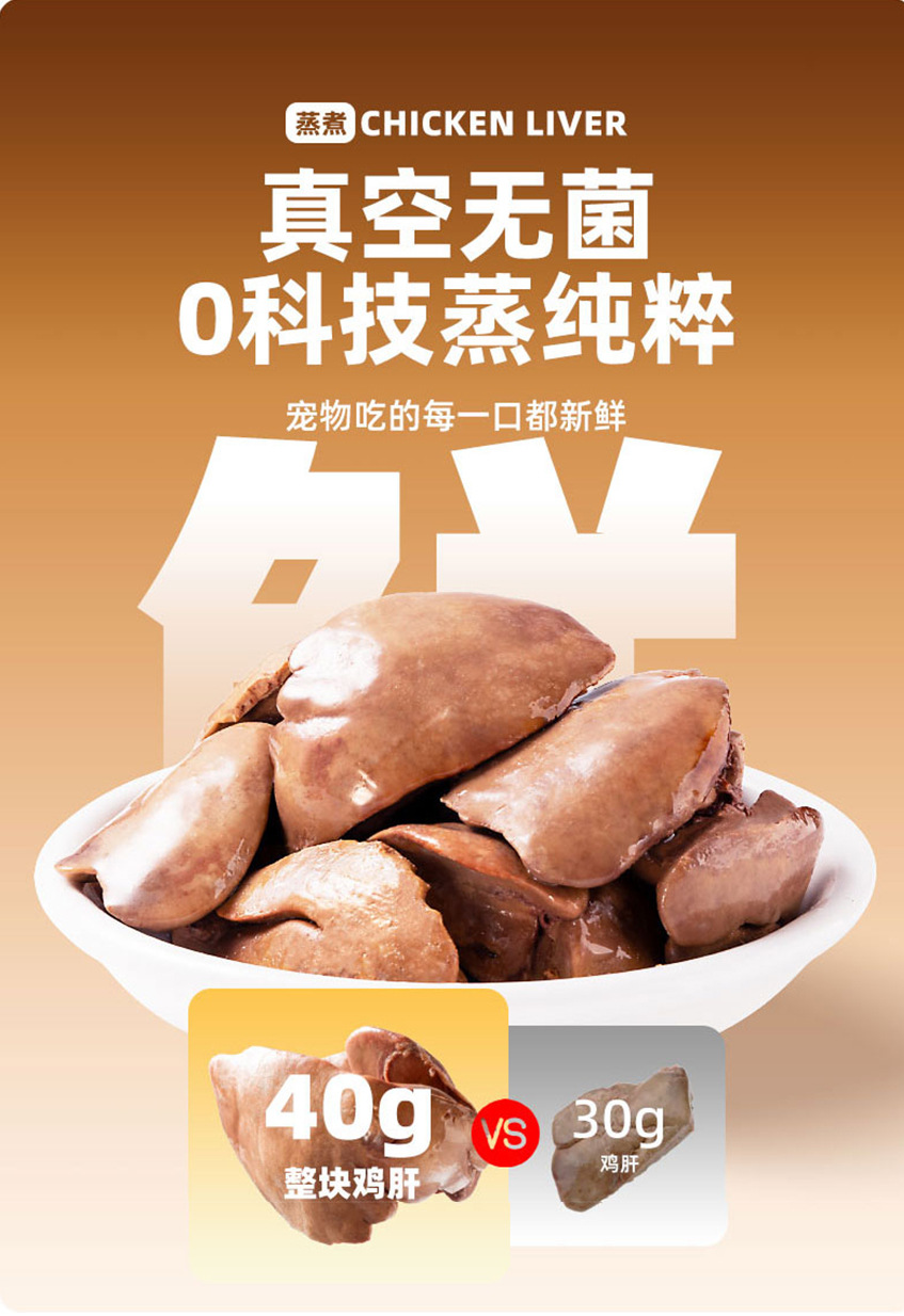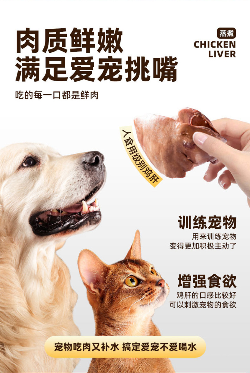 毛大胖宠物蒸煮鸡肝水煮鸡肝即食增肥营养补水拌粮猫狗零食40g