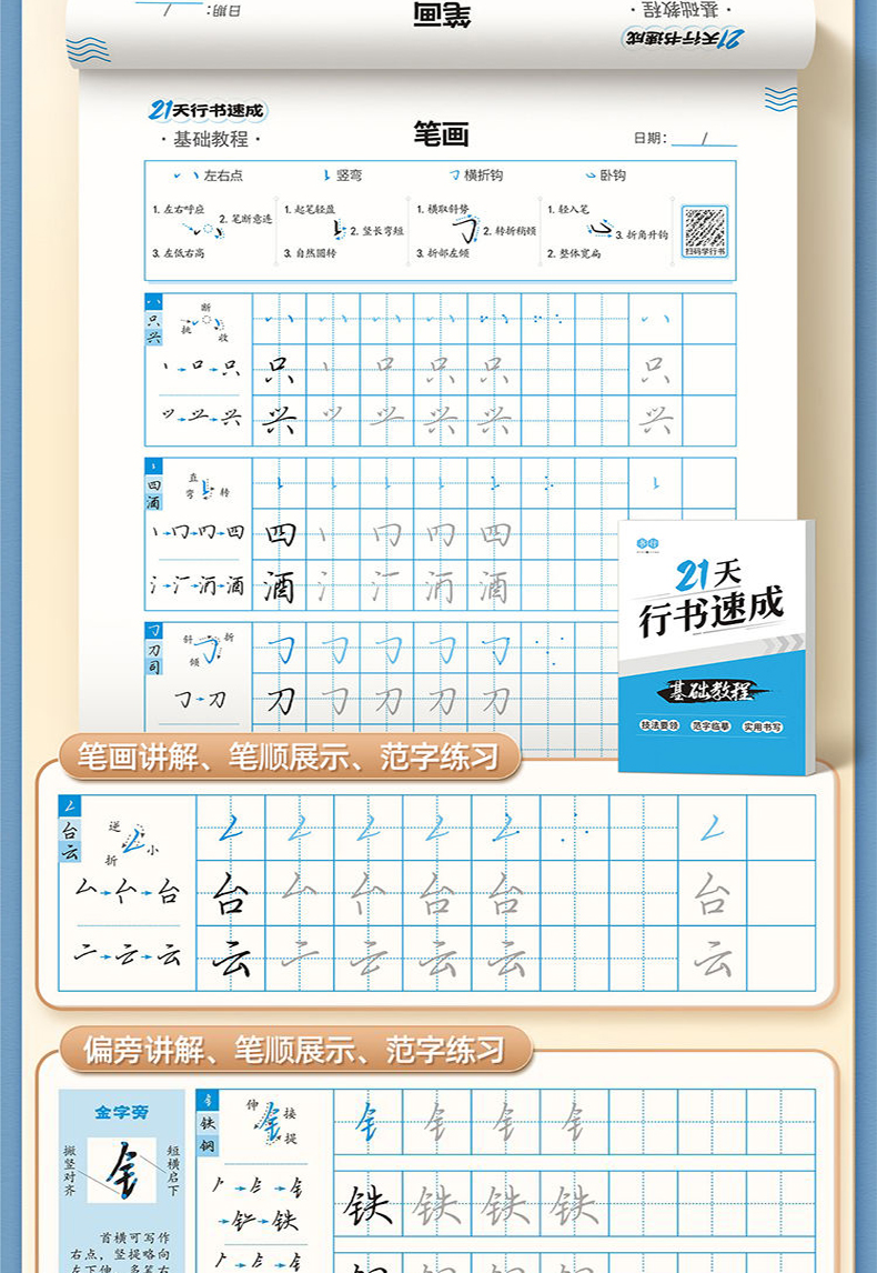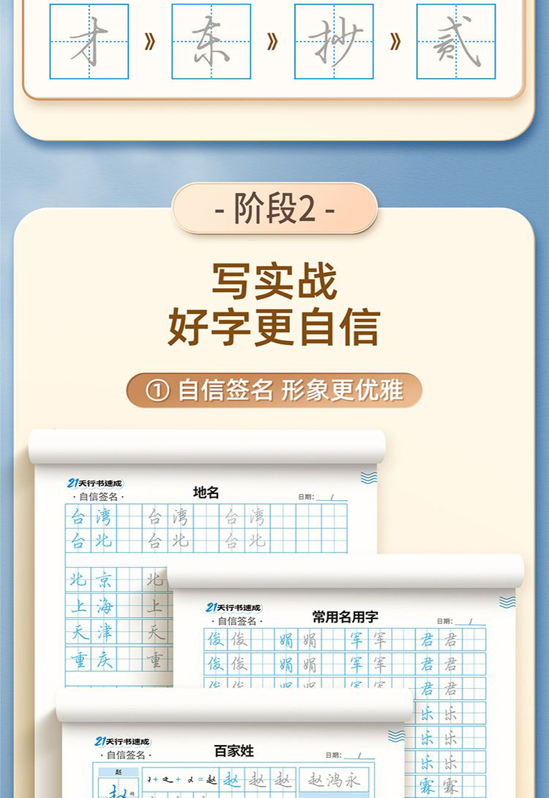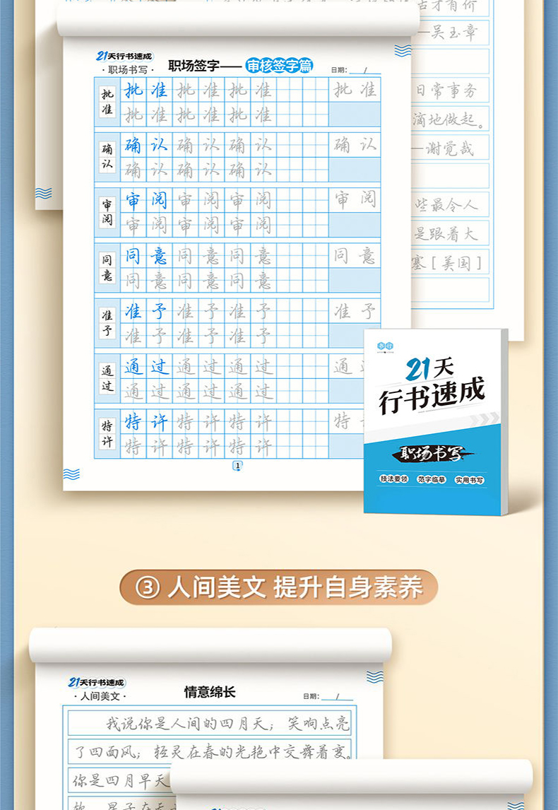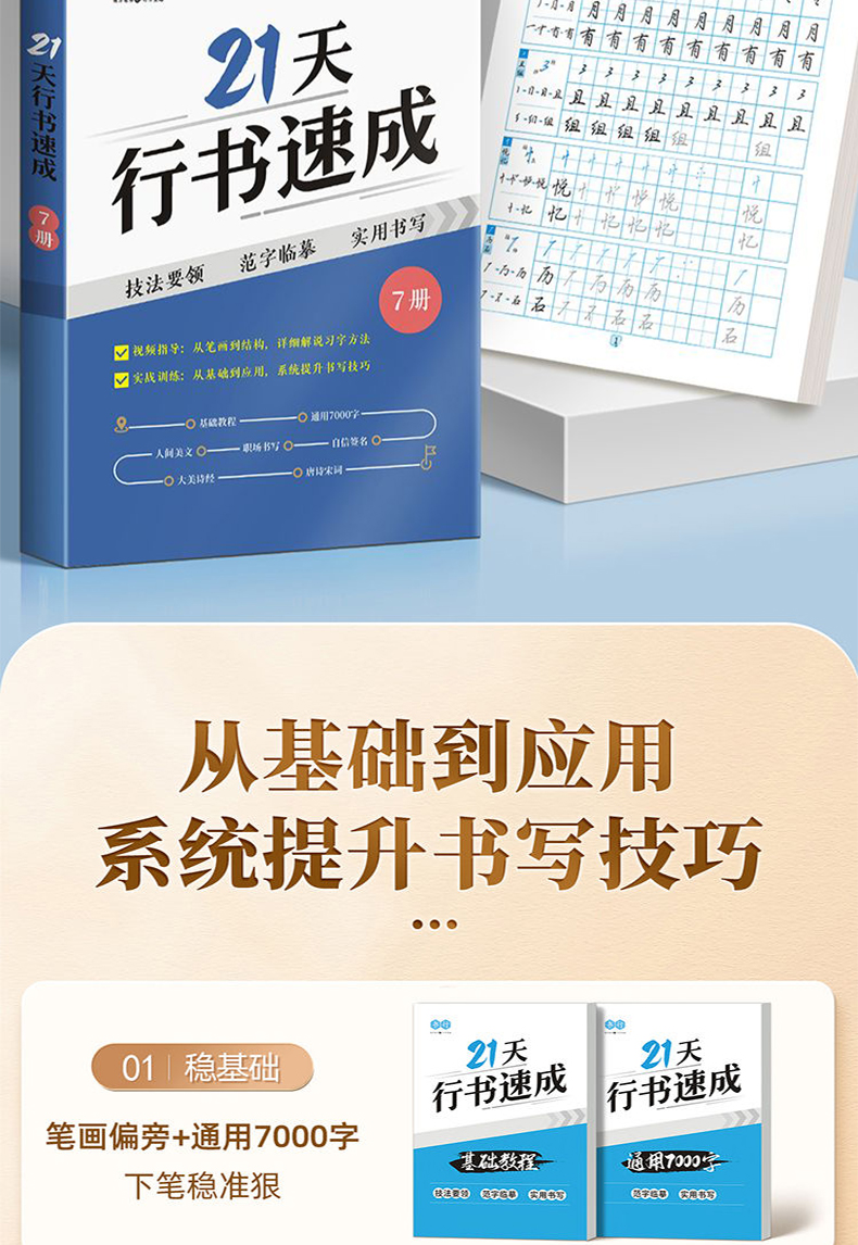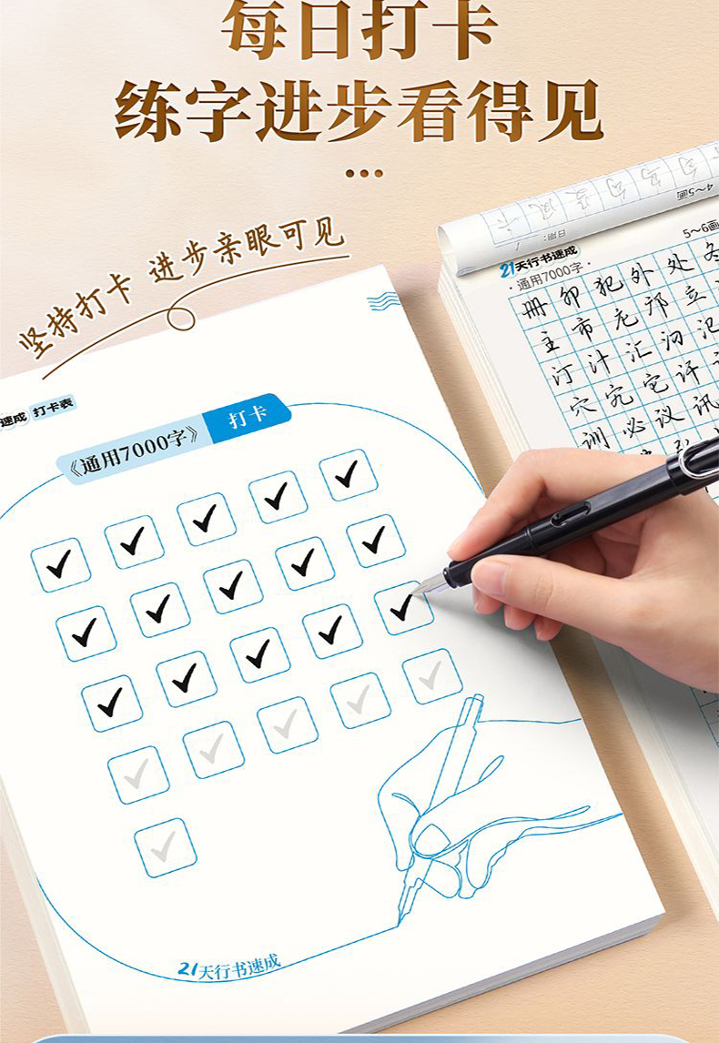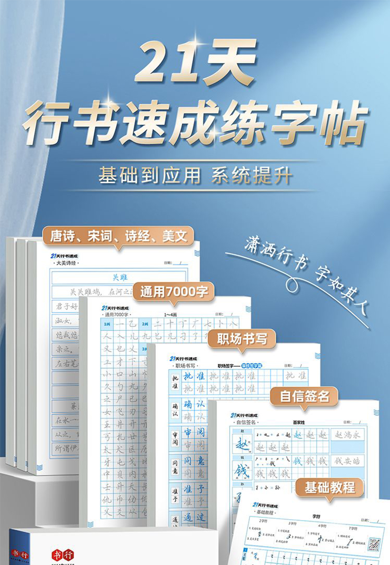 行书21天速成字帖自信签名职场书写行楷基础硬笔书法练字帖高中生成年人7000字控笔训练字帖