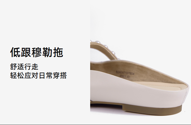 千百度女鞋夏季时装半凉优雅玛丽珍凉鞋粗跟单鞋后空通勤 A23223389