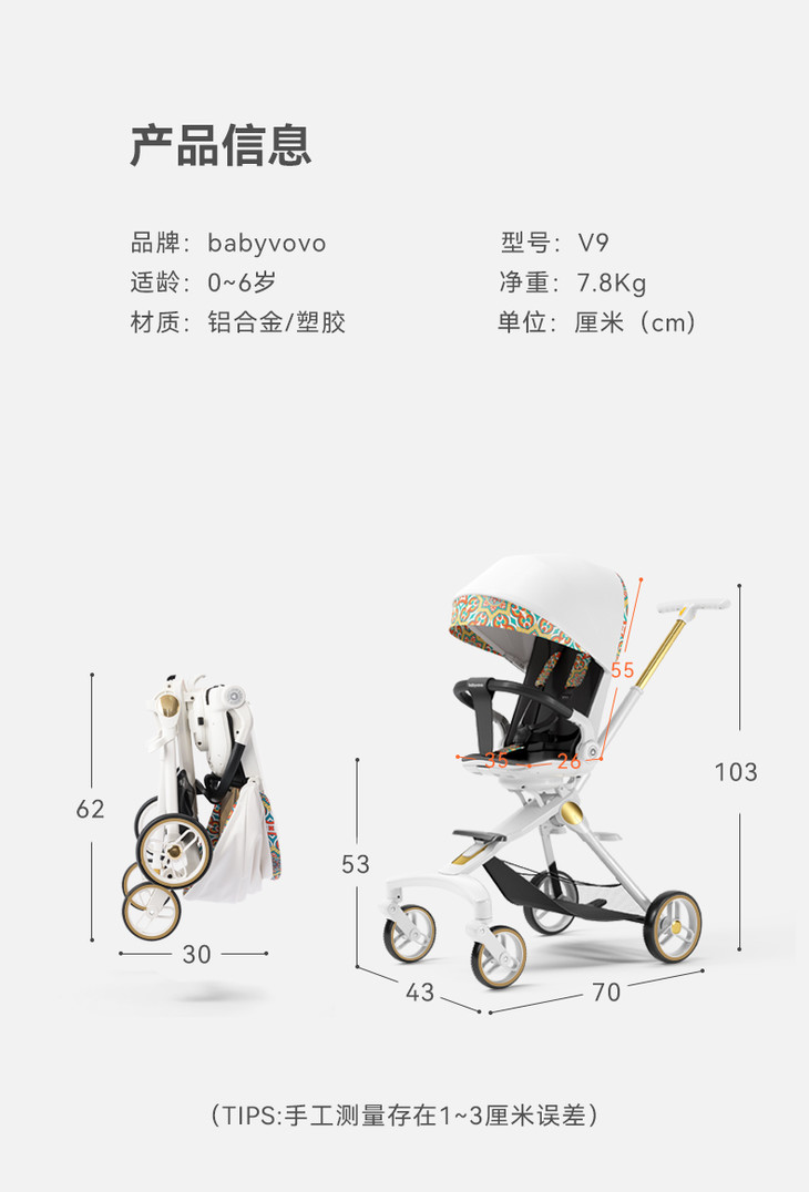 【babyvovo】溜娃神器 V9 可坐可躺双向婴儿手推车