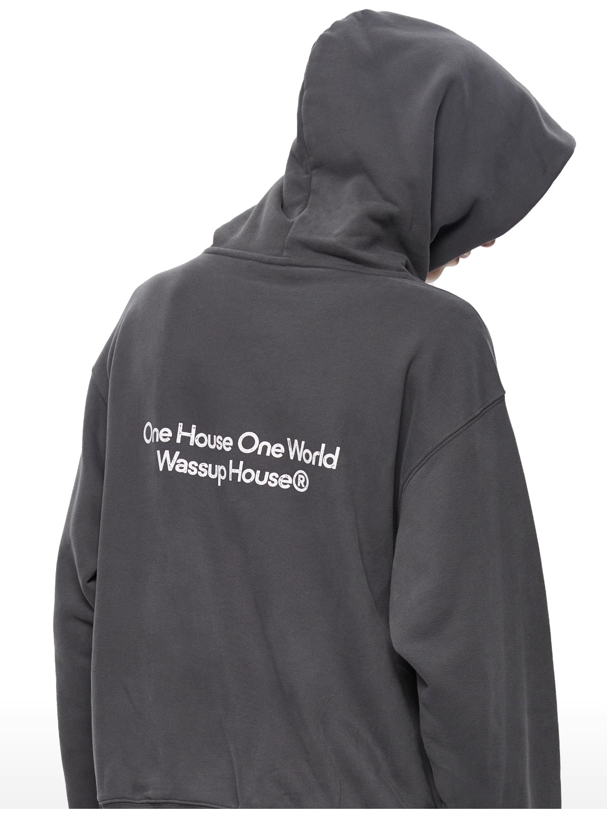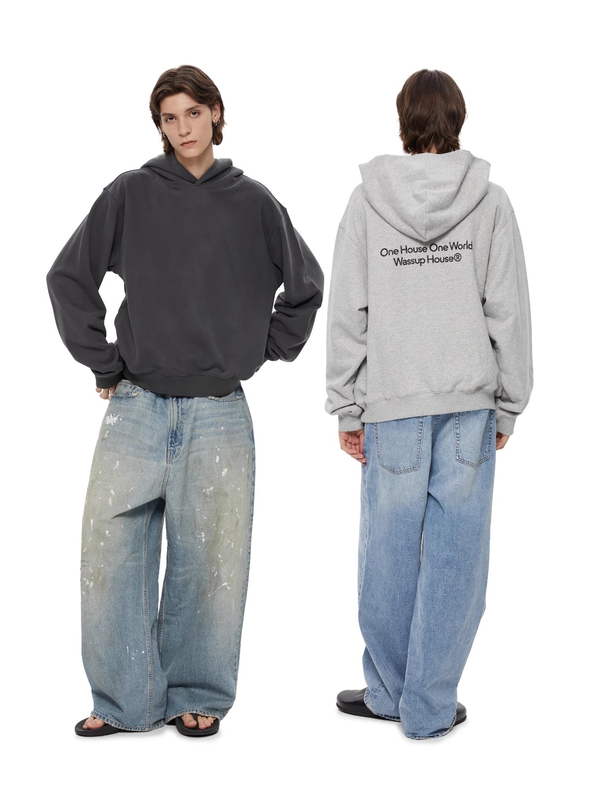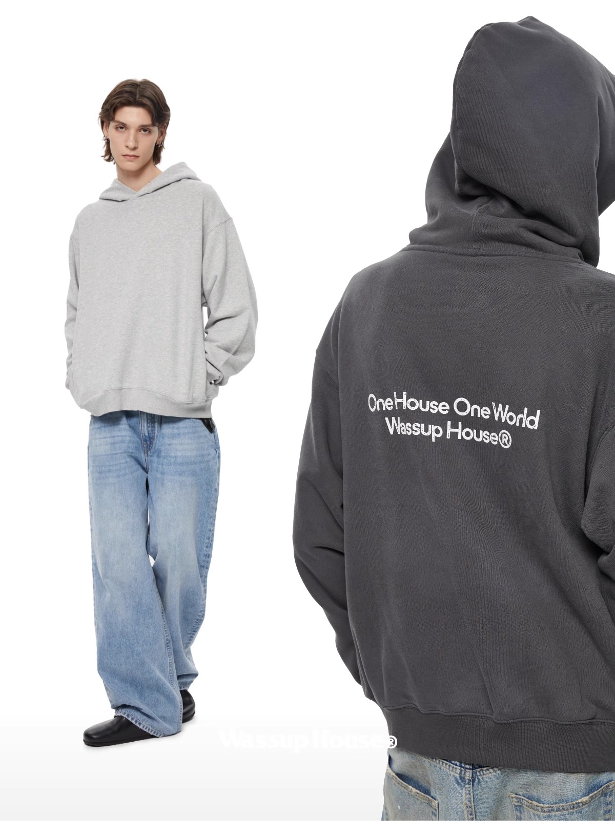 WassupHouse宽松短宽印花插袋连帽卫衣