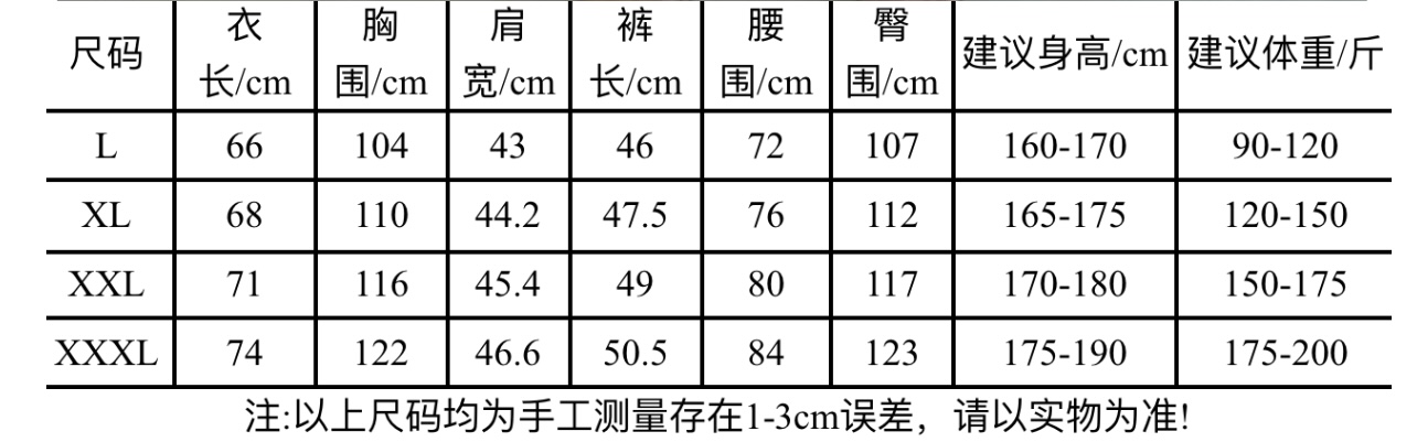 男款:黑色、白色、(尺码L XL XXL XXXL)