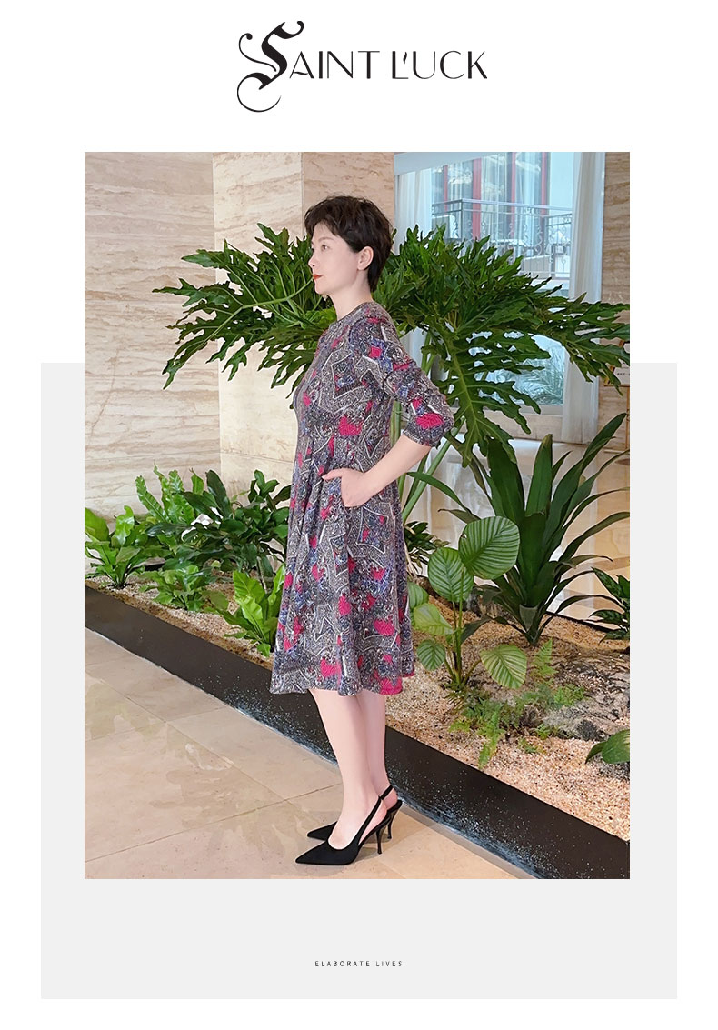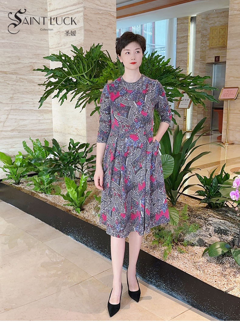 SAINT L’UCK/圣媛女装秋季中长款花色连衣裙SA319L13