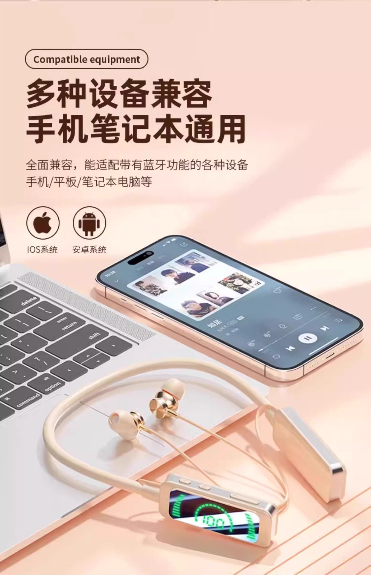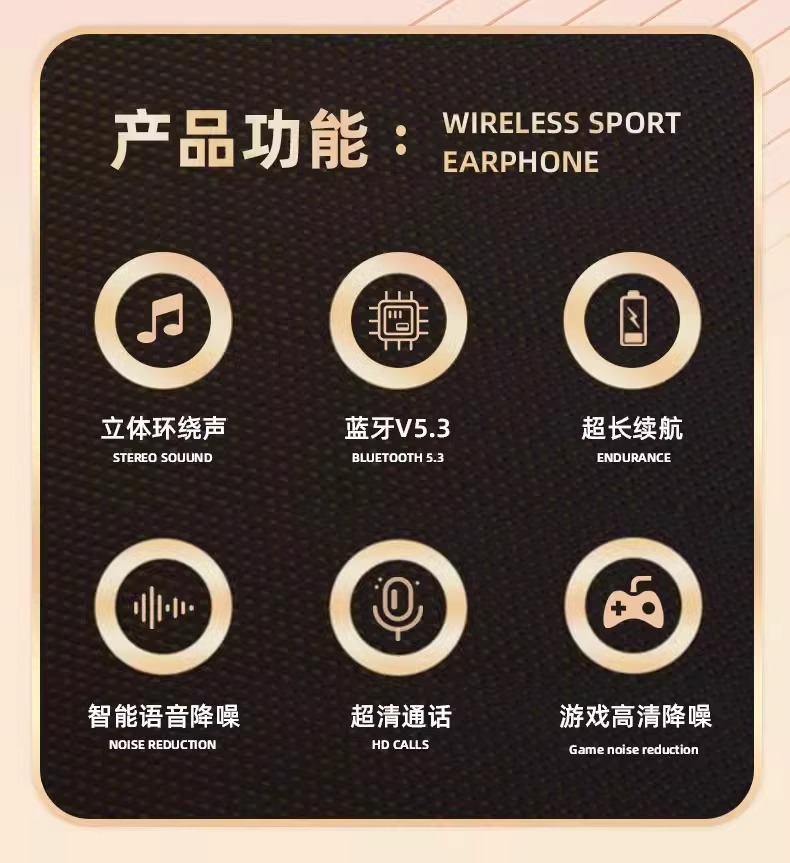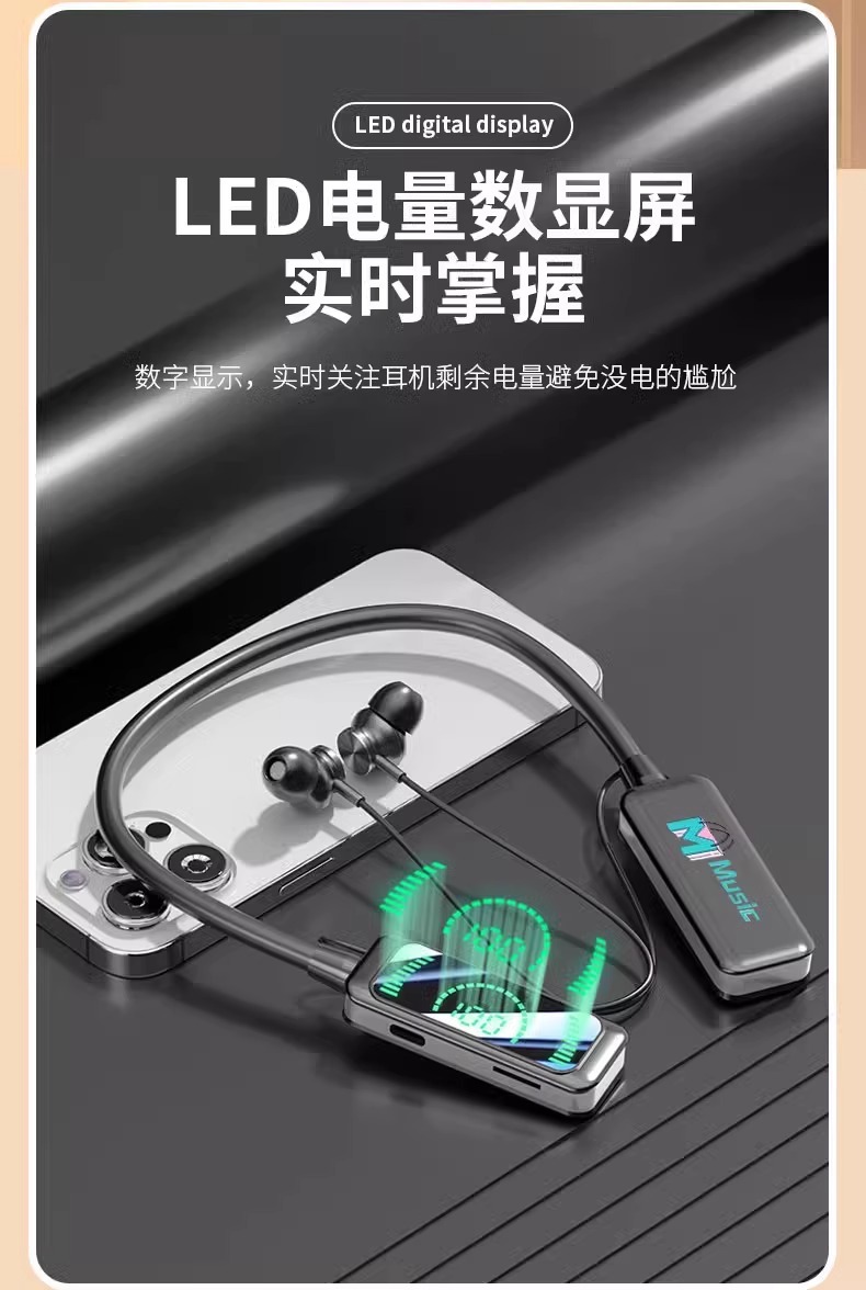 「抖音同款!立体环绕声」挂脖式蓝牙耳机 无线颈挂入耳式降噪长续航运动跑步男女数码配件