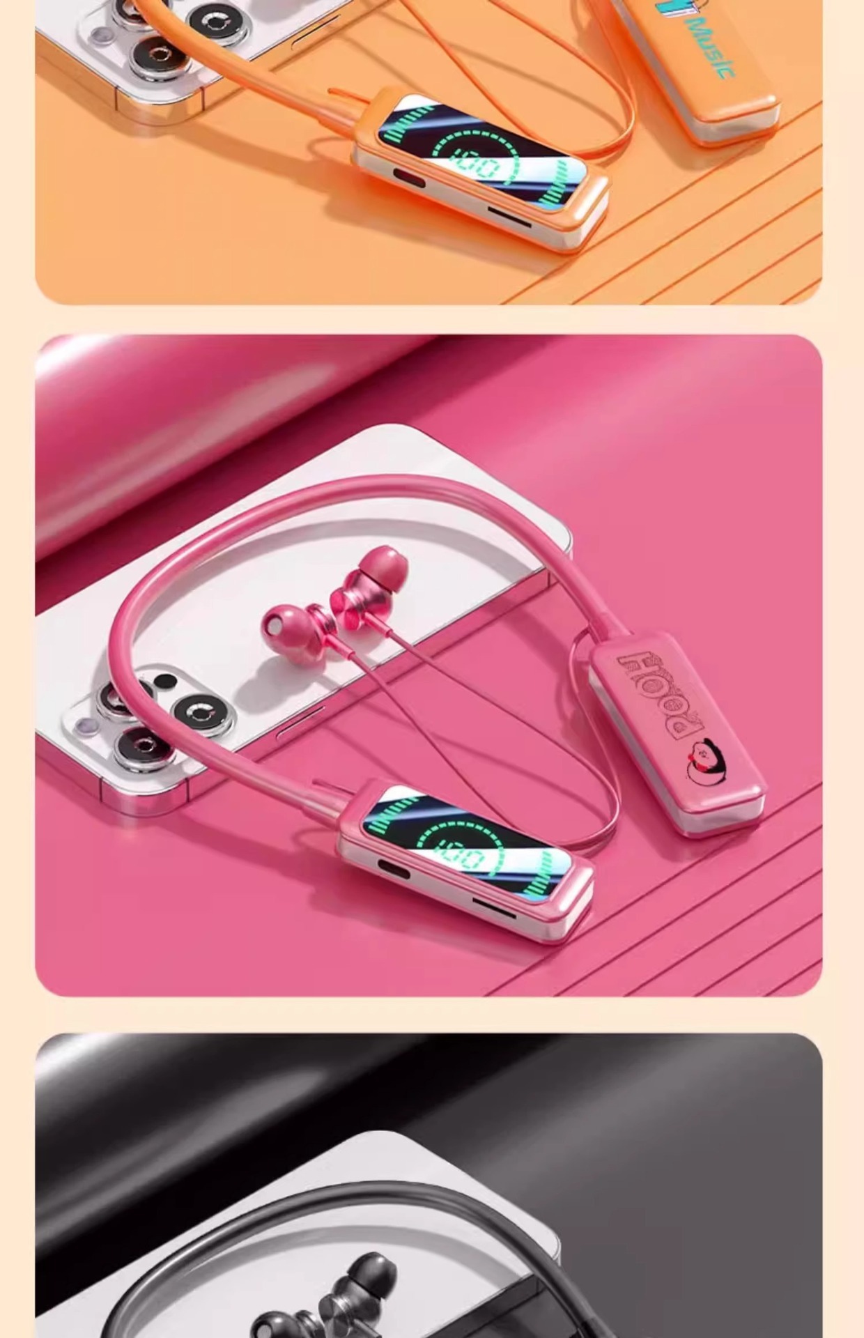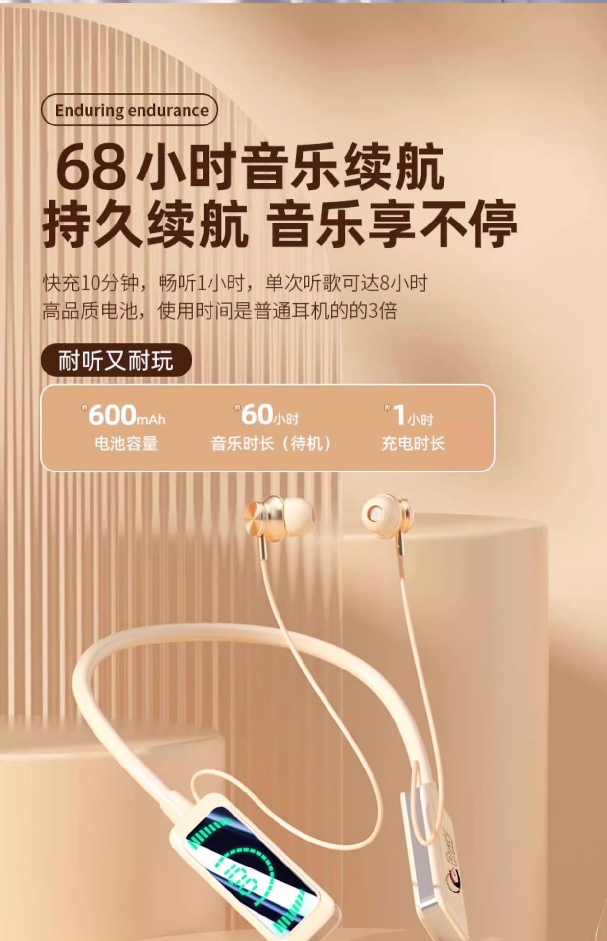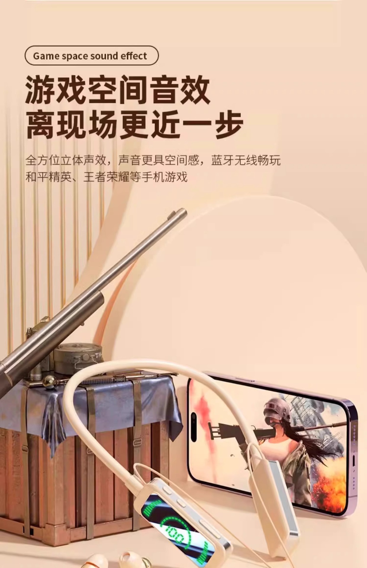 「抖音同款!立体环绕声」挂脖式蓝牙耳机 无线颈挂入耳式降噪长续航运动跑步男女数码配件