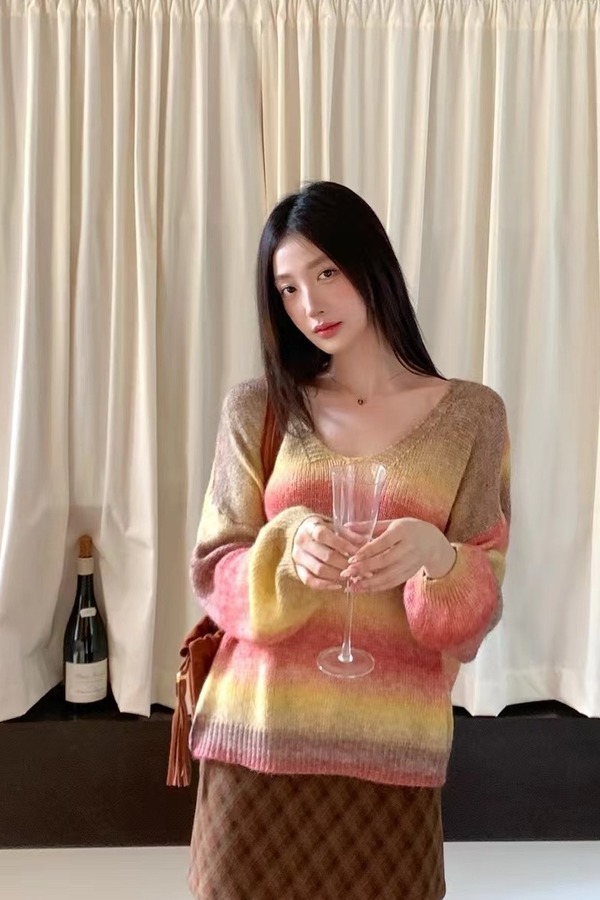 ANSUABEL 港风渐变色慵懒风宽松休闲毛衣上衣 21520