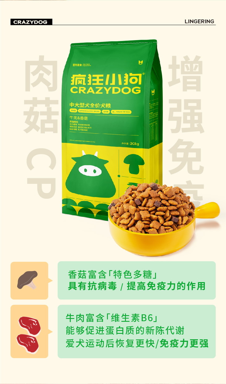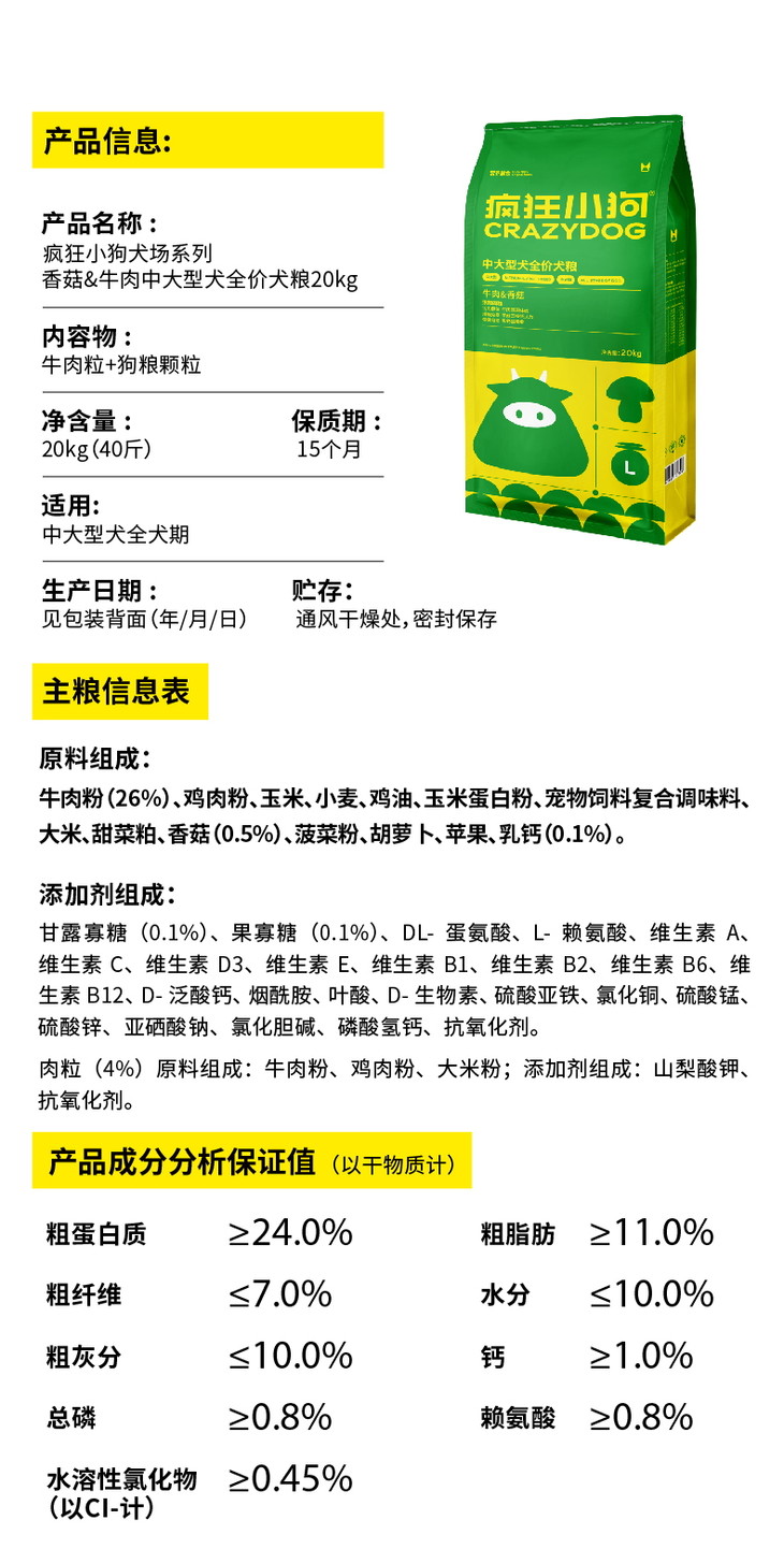 | 品牌: 疯狂小狗 | 品名: (中大型犬)成犬膳食配方 香菇牛排口味犬粮 20000g |