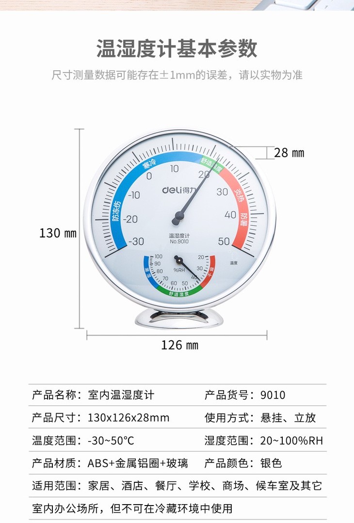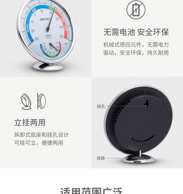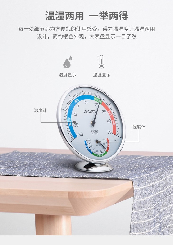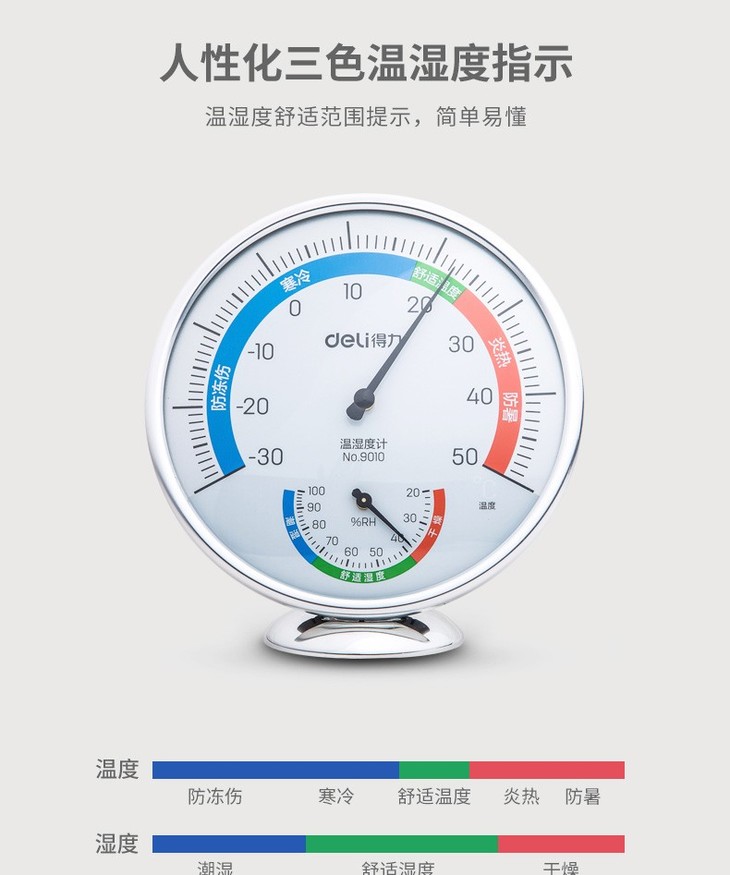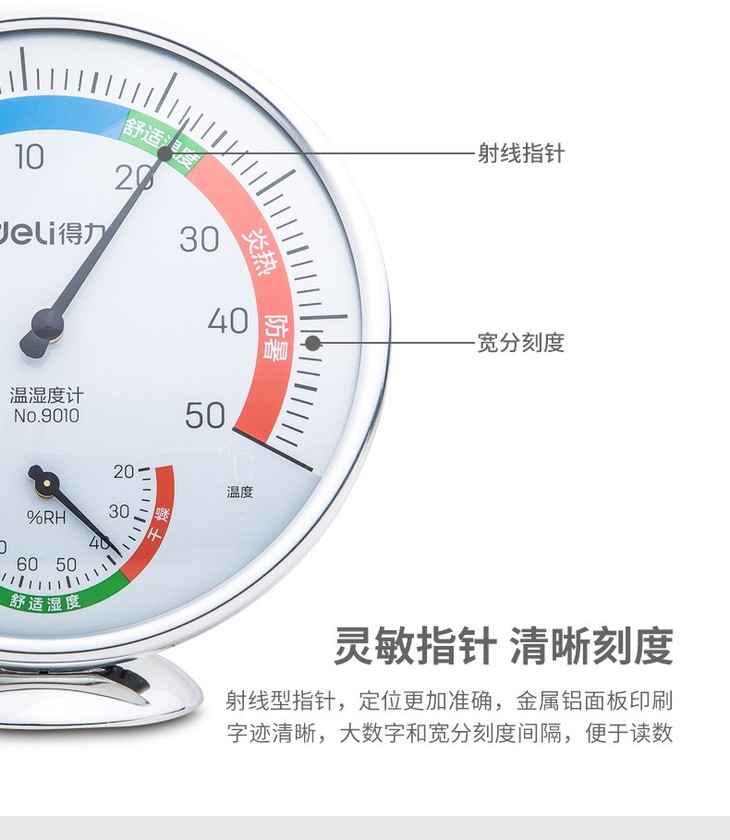 得力温度计工业家用温湿度计高精度室内外挂壁式 大号 9010
