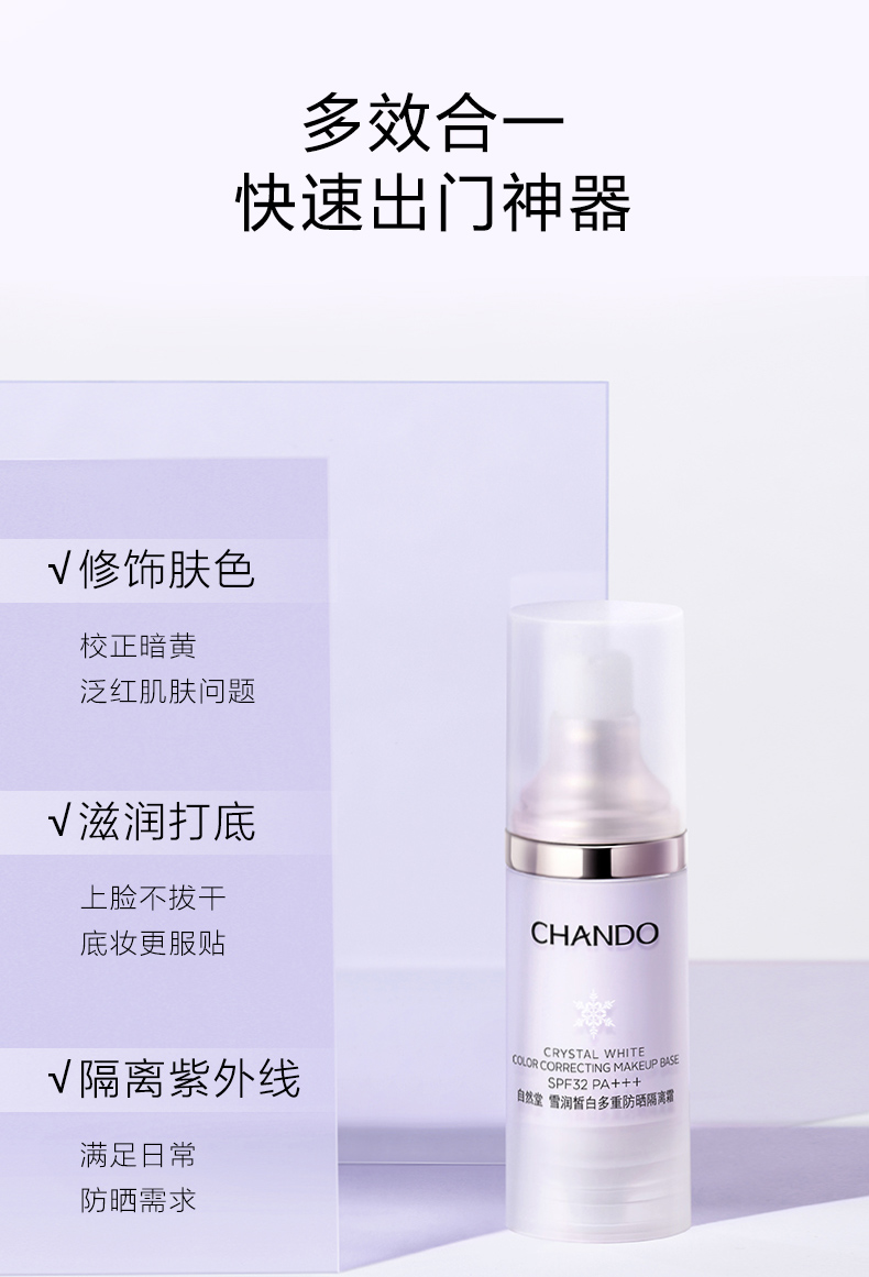 自然堂雪润皙白多重防晒隔离霜SPF32PA+++(淡紫色)30mL