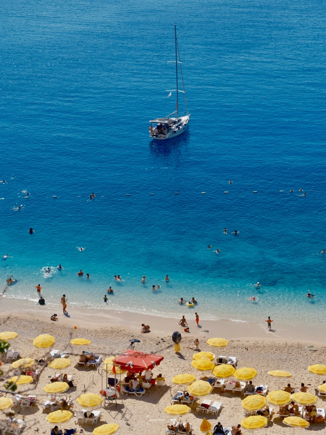 蓝礁湖是土耳其最著名的海滩之一,其独特的绿松石色海水和被群山环绕的海湾,使其成为水上运动和观景的天堂。