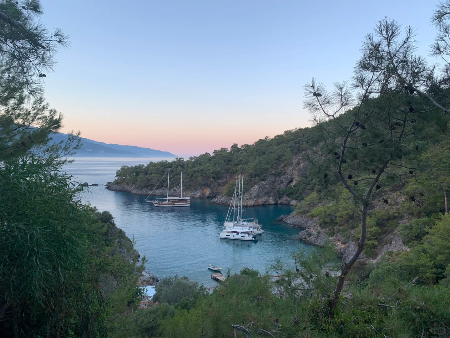 傍晚抵达费特希耶,费特希耶是土耳其地中海沿岸的航海重镇,拥有完善的港口设施和清澈的海水,是帆船旅行的理想起点,晚上第一次体验住在船上,适应海上生活