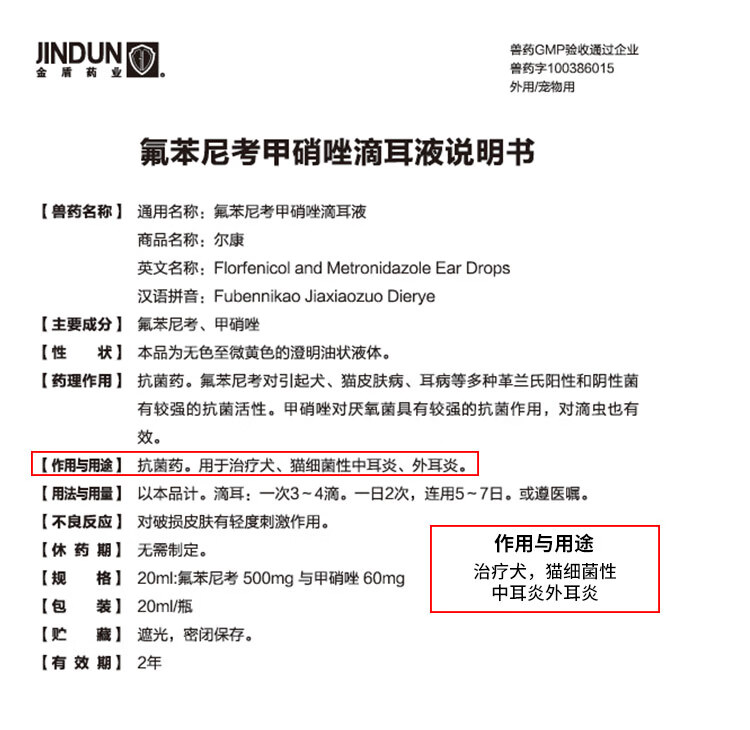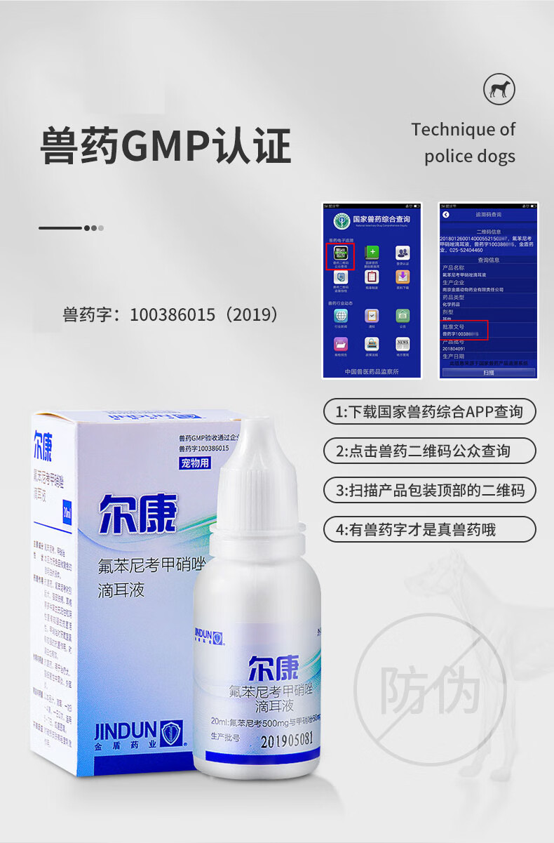 金盾尔康宠物滴耳液犬猫通用耳螨耳炎治细菌中外耳炎20ml/瓶