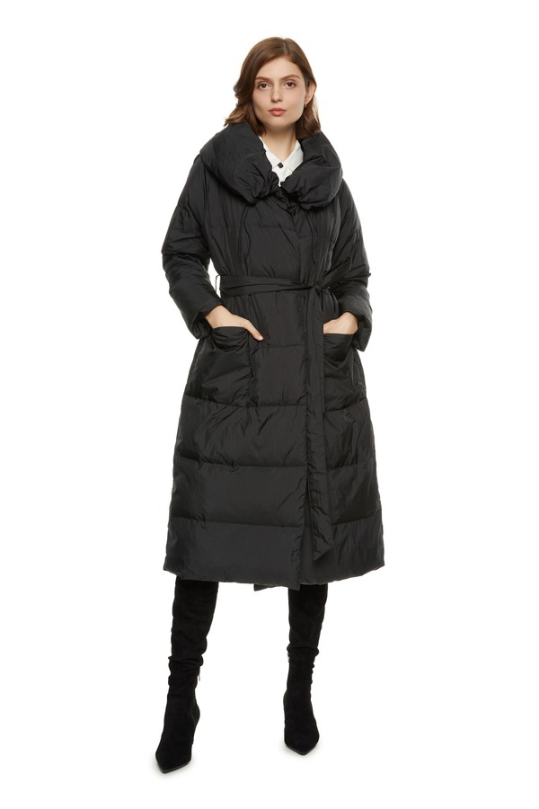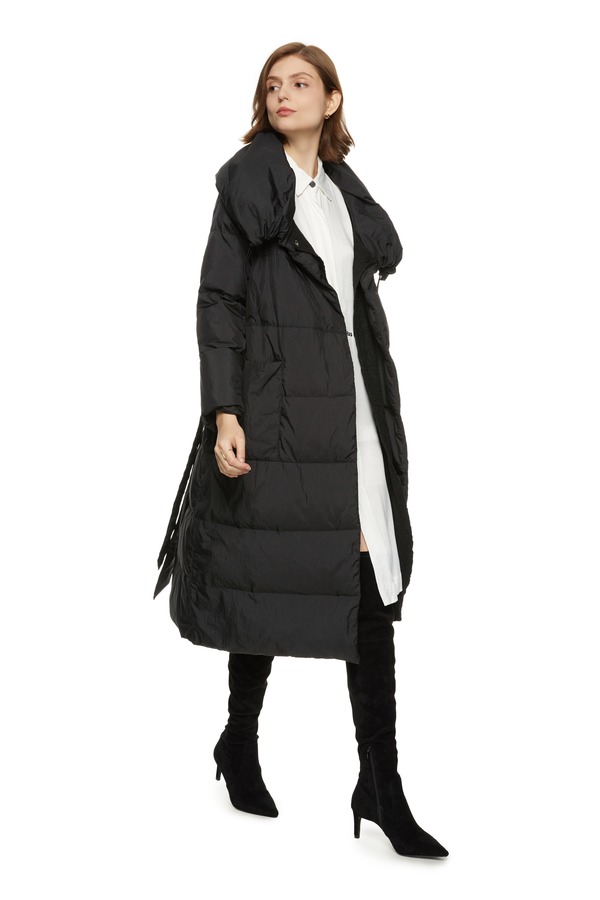 DEHUNTER 黑色束腰长羽绒 6161