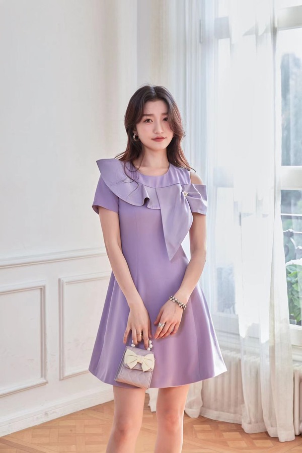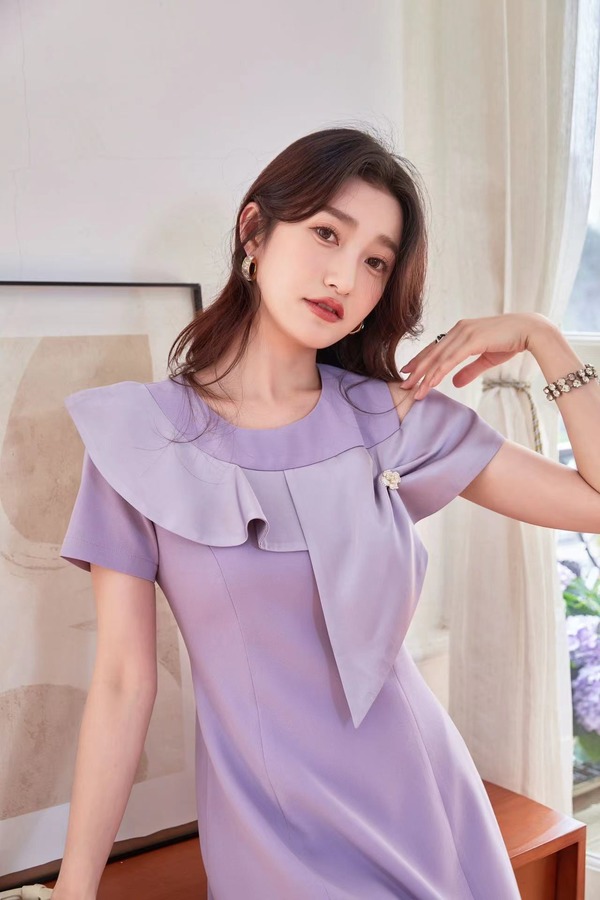 amadella 香芋紫荷叶边领连衣裙 18274