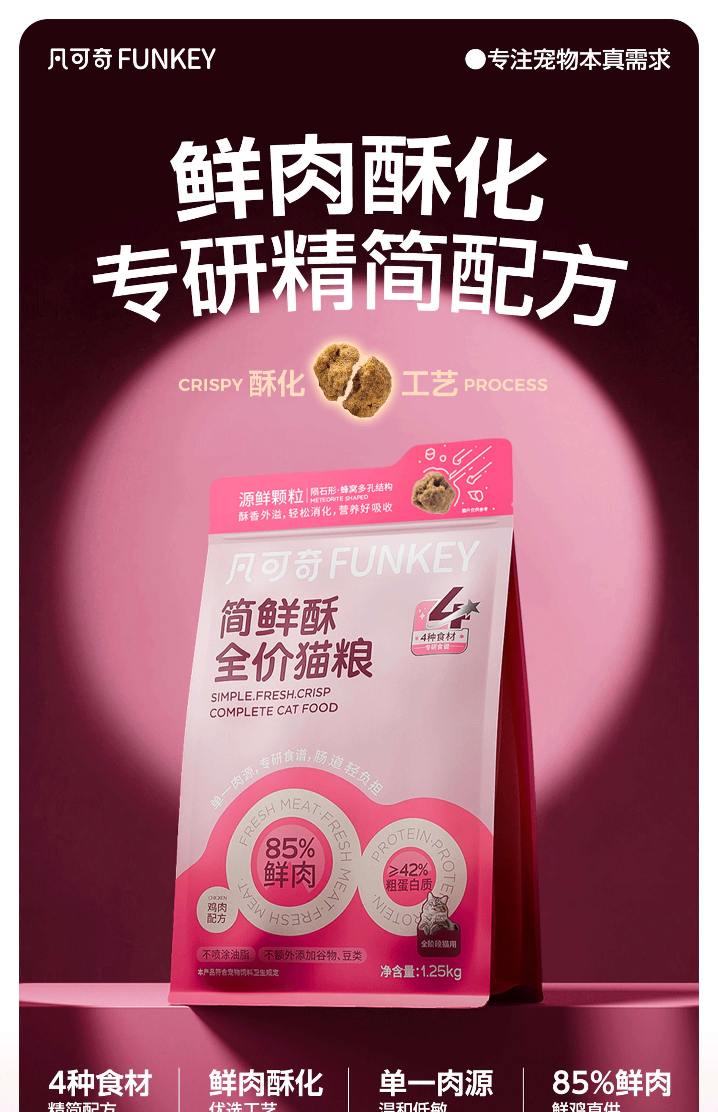 凡可奇简鲜酥全价酥化粮成猫幼猫粮通用高鲜肉易消化酥脆 猫粮 试吃装