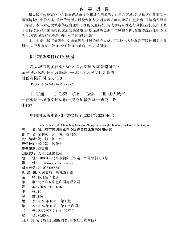 书名:超大城市传统商业中心区综合交通发展策略研究