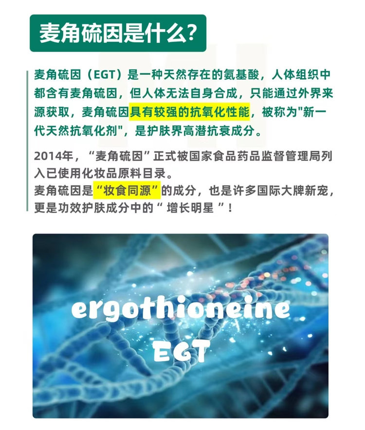 而麦角硫因能提升吸收率,同时起到抗炎和促进皮肤年轻化的效果