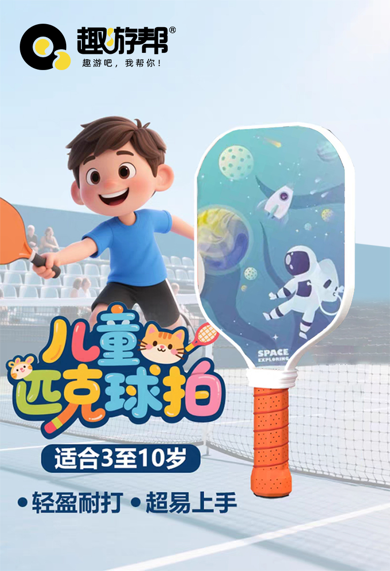 趣游帮 2球1拍儿童高回弹匹克球训练套装(B011)