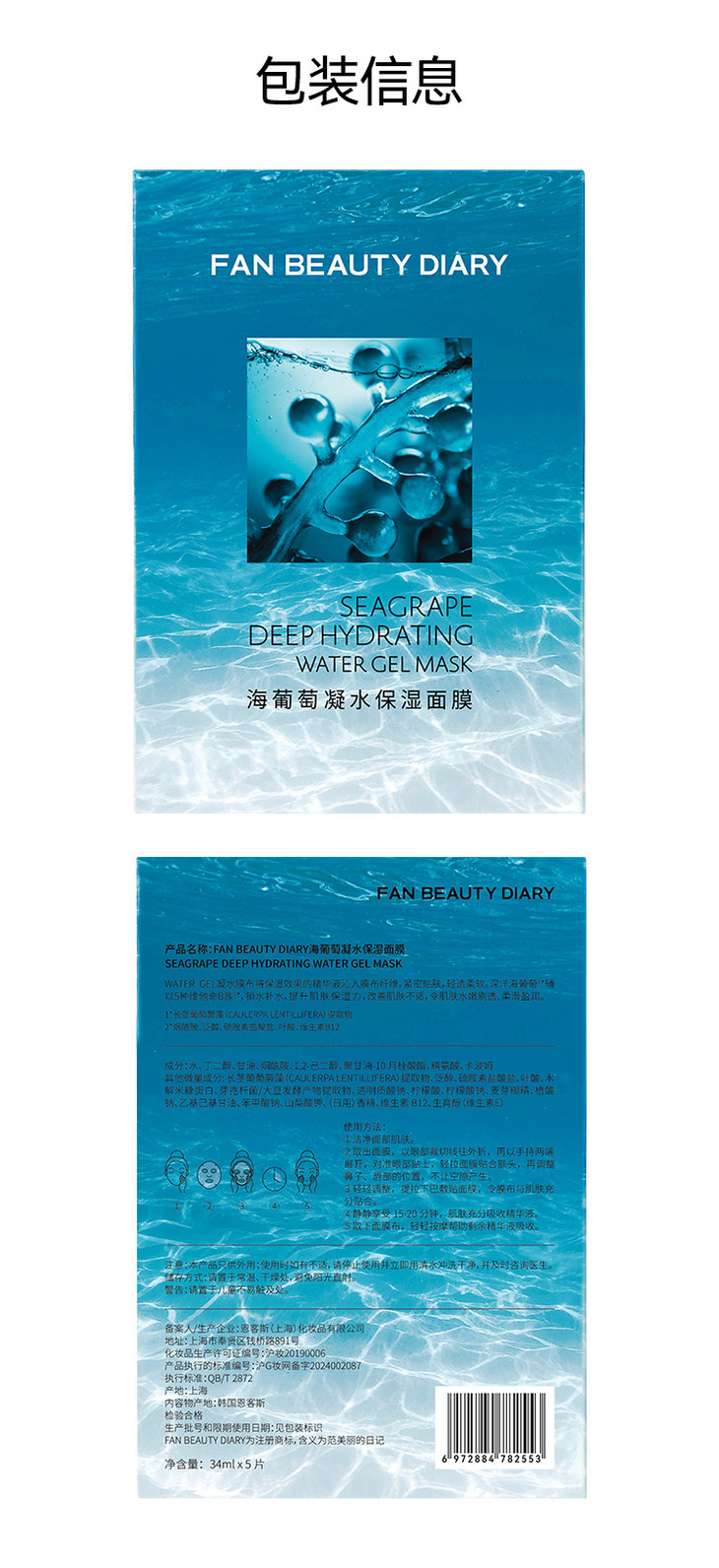 【春日膜Fan生】海葡萄凝水保湿面膜34ml*5片/盒