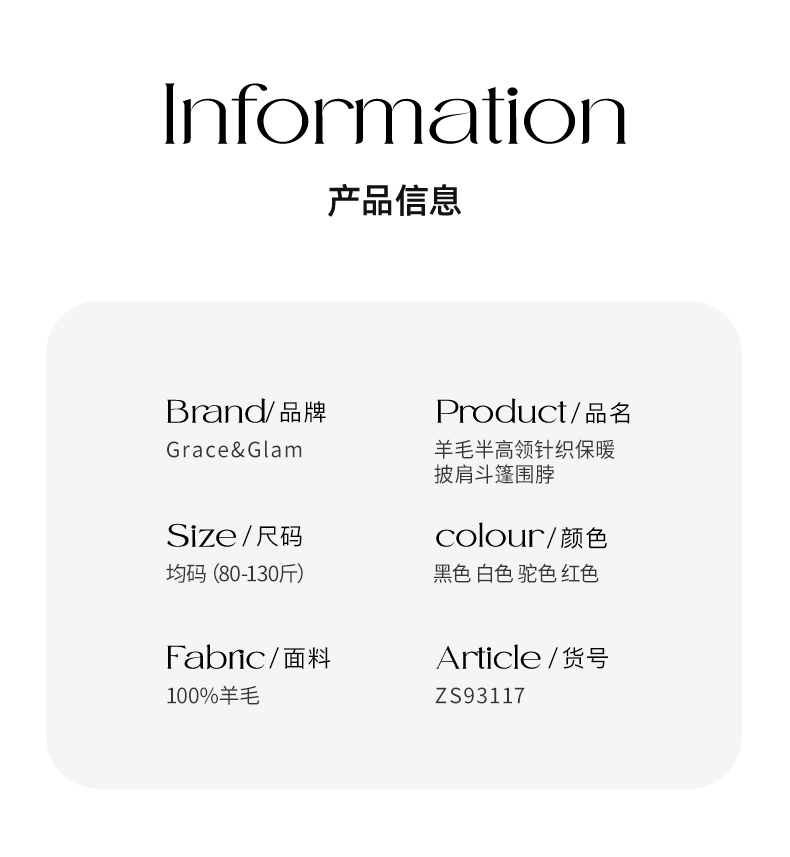 Grace&Glam 羊毛半高领针织保暖披肩斗篷围脖